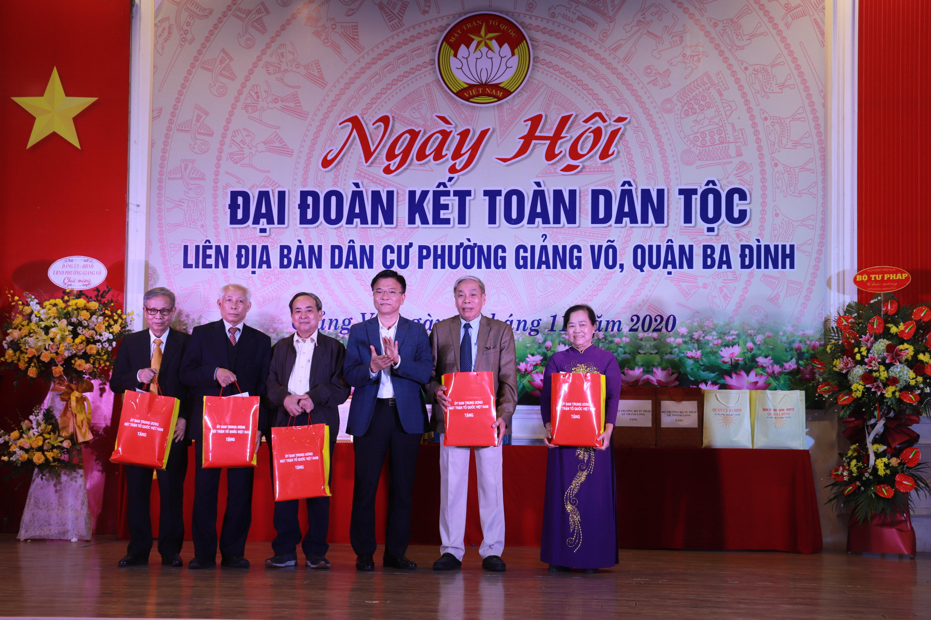 Cũng trong ngày hội, Bộ trưởng đã tặng quà cho 20 hộ gia đình có hoàn cảnh khó khăn, 01 phần quà cho UB MTTQ phường và 05 phần quà đến các đồng chí Ủy viên UBMTTQ phường có nhiều đóng góp cho công tác MTTQ.