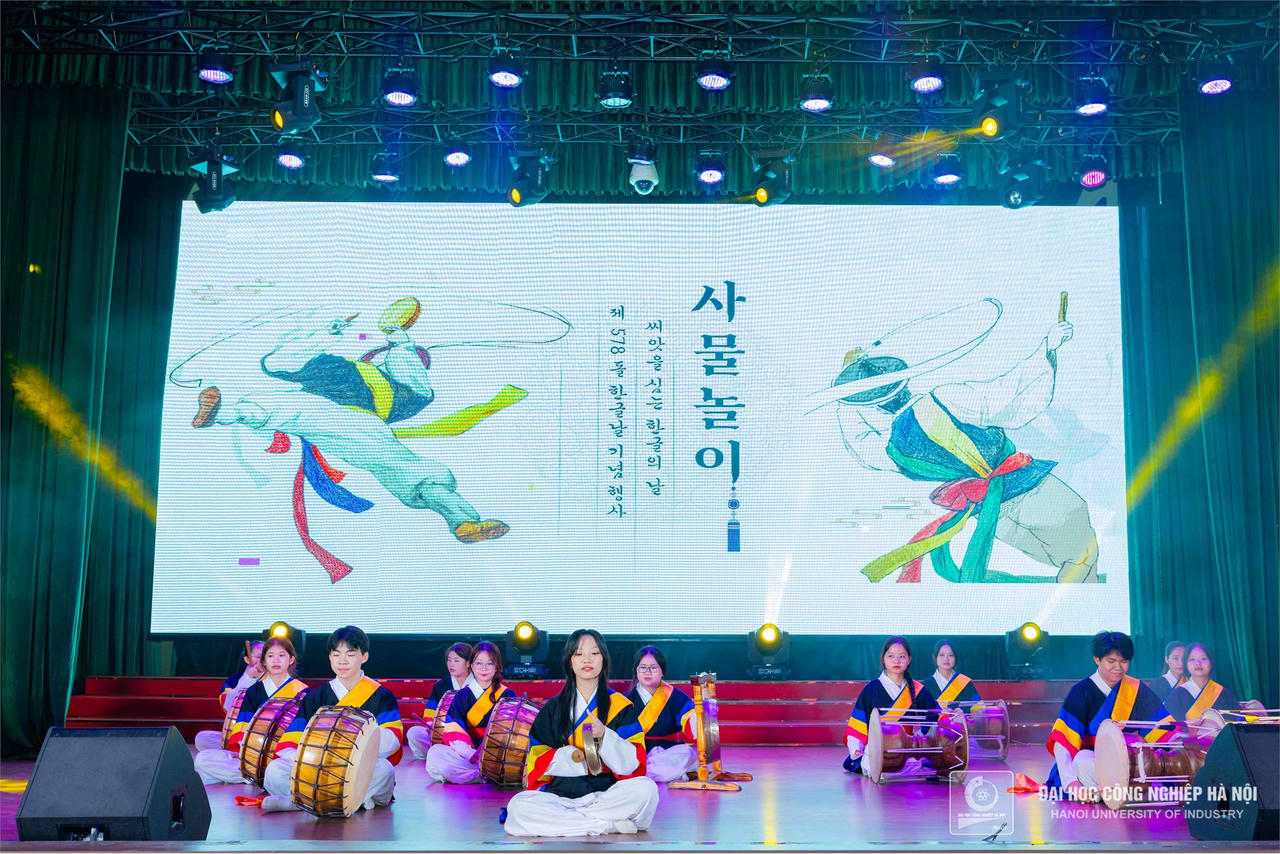 Không gian văn hóa Hàn Quốc được tái hiện sinh động tại Ngày hội Hangeul 2024 năm nay. Tiết mục Trống Samullori do đoàn nghệ thuật khoa Ngôn ngữ Hàn Quốc - Trường NN – DL, HaUI biểu diễn được đông đảo khán giả yêu thích |