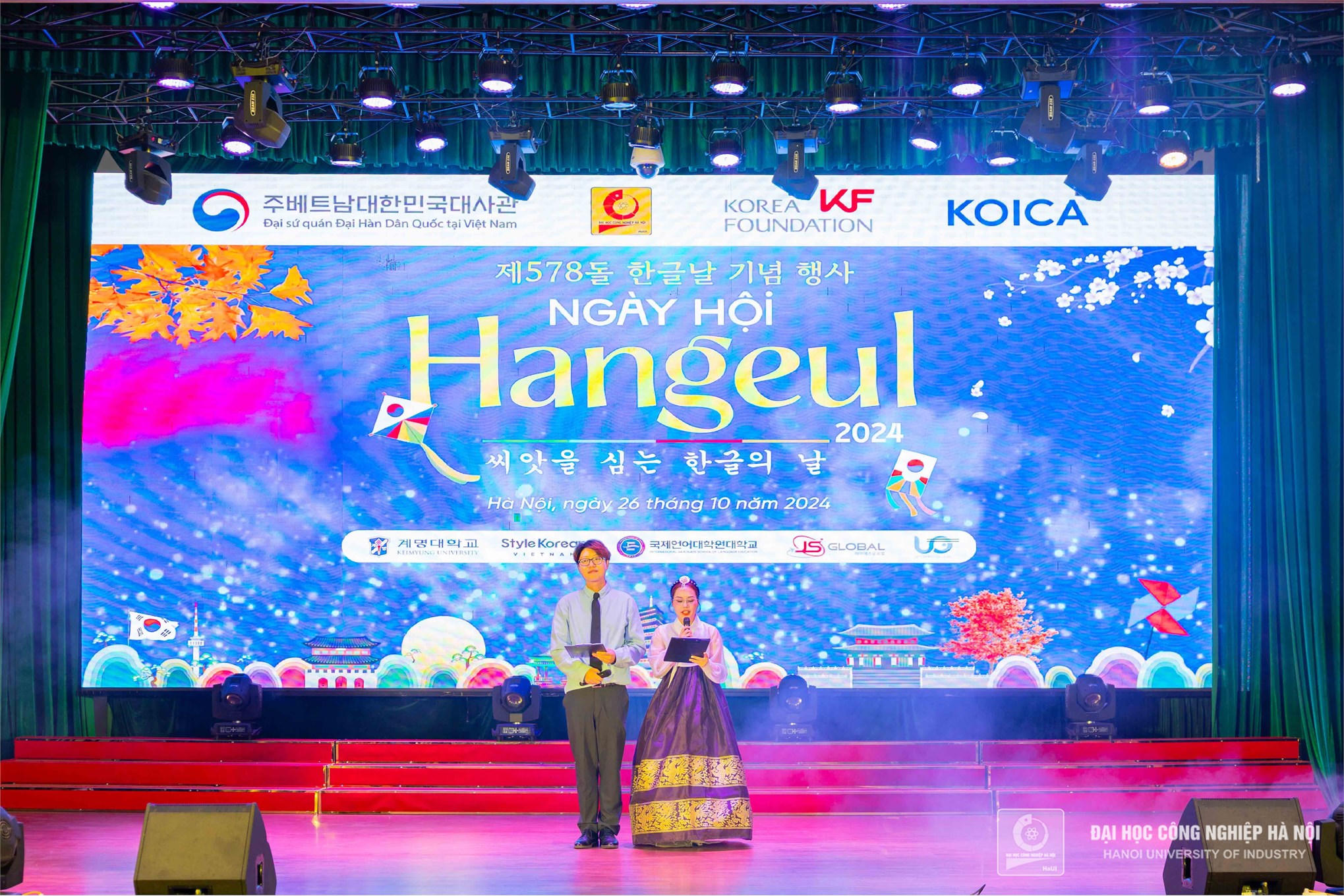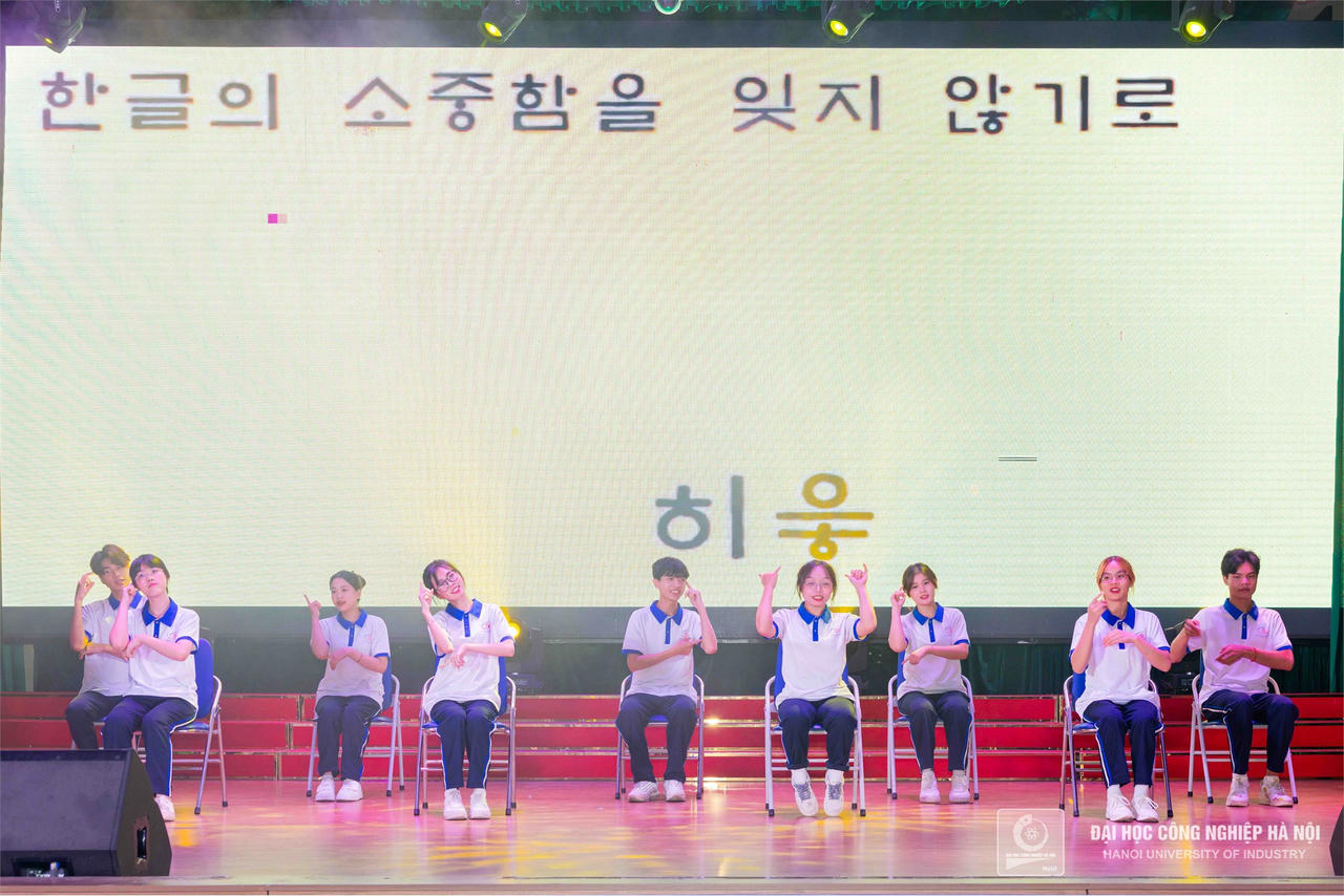 Phát biểu tại chương trình, PGS.TS.Phạm Văn Đông - Phó Hiệu trưởng Trường Đại học Công nghiệp Hà Nội khẳng định: Ngày hội Hangeul không chỉ là dịp để tôn vinh di sản văn hóa và ngôn ngữ Hàn Quốc mà còn là cơ hội để sinh viên, giảng viên ngành Hàn Quốc tại Việt Nam cùng nhau học hỏi, giao lưu và trải nghiệm những giá trị văn hóa đặc sắc của xứ sở Kim Chi.