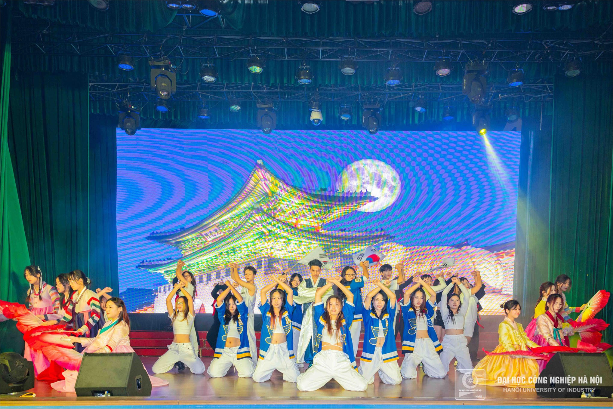 Tiết mục Trống Samullori do đoàn nghệ thuật khoa Ngôn ngữ Hàn Quốc - Trường NN – DL, HaUI biểu diễn được đông đảo khán giả yêu thích |