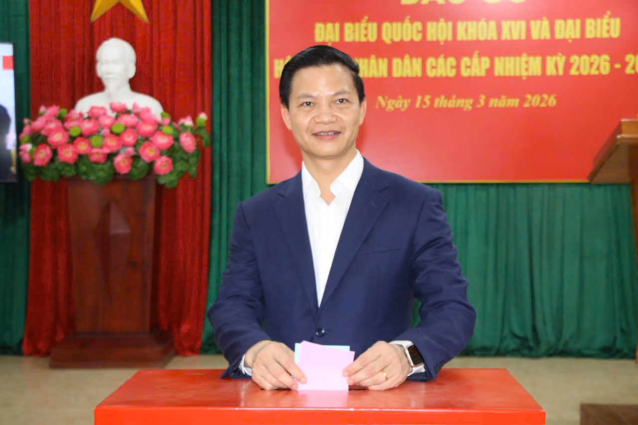 Cũng ở khu vực bỏ phiếu Tổ dân phố 15, phường Phan Đình Phùng (Thái Nguyên), Ủy viên Trung ương Đảng, Thứ trưởng Thường trực Bộ Nông nghiệp và Môi trường Trịnh Việt Hùng tham gia bỏ phiếu bầu đại biểu Quốc hội khóa XVI và đại biểu HĐND các cấp nhiệm kỳ 2026 - 2031.