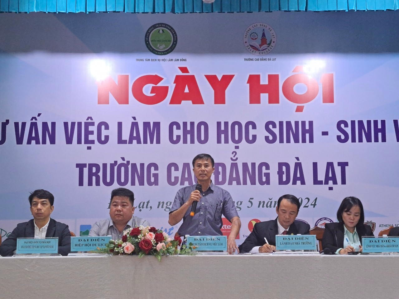 Ông Cao Thế Anh - Phó Chủ tịch Hiệp hội Du lịch Lâm Đồng - Đà Lạt chia sẻ tại sự kiện: “Ngoài cần có những kỹ năng nghề chuyên nghiệp, các bạn học sinh, sinh viên cần trang bị thái độ chuyên nghiệp và có tính cầu tiến. Tôi mong muốn và hy vọng các bạn học tập và làm việc tích cực để có một đầu ra đảm bảo chất lượng, như vậy chắc chắn các bạn sẽ có được những kết quả tốt trong cơ hội việc làm”.