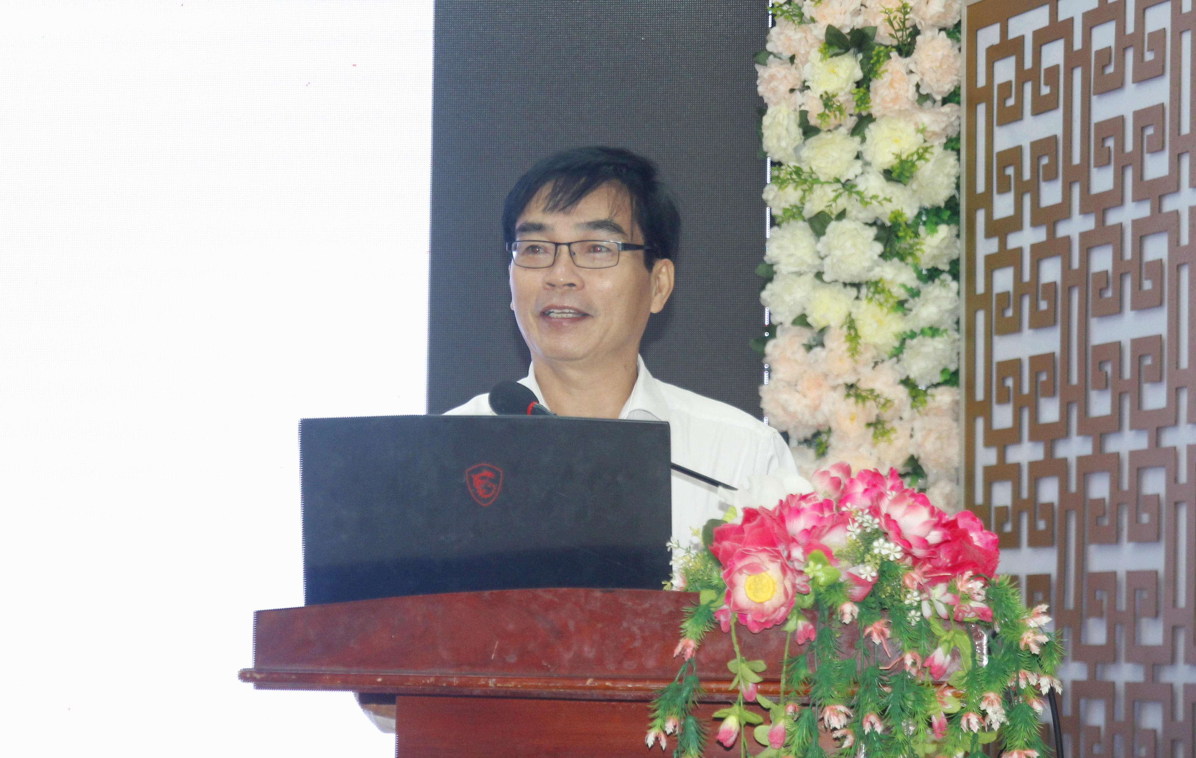 Ông Vưu Nghị Bình - Giám đốc Sở Tư pháp, Phó Chủ tịch Thường trực Hội đồng PHPBGDPL tỉnh Bạc Liêu, phát biểu kỷ niệm 10 năm Ngày Pháp luật Việt Nam và phổ biến một số văn bản pháp luật. |