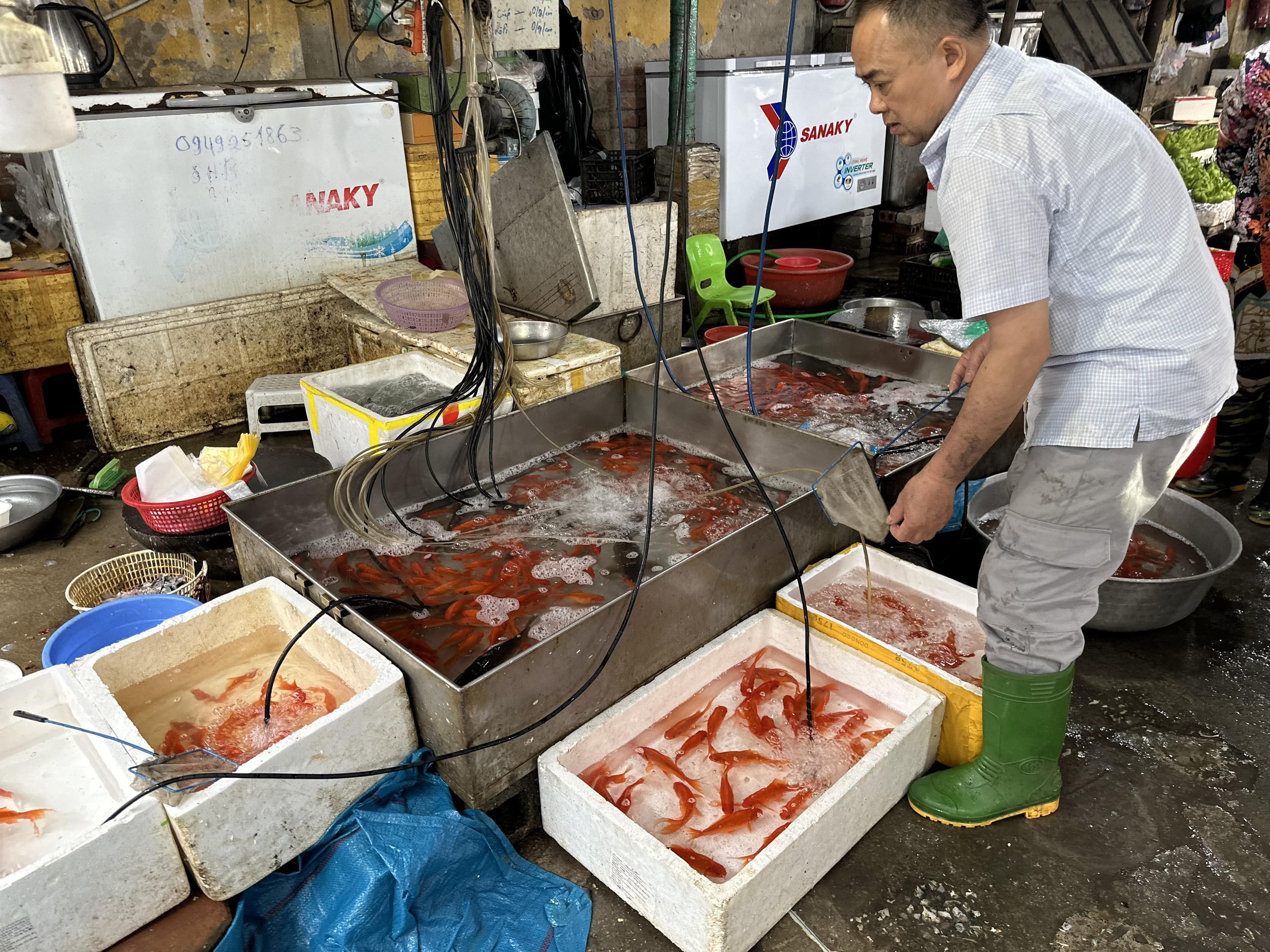 Những con cá chép không thể thiếu trong các chợ ngày ông Công ông Táo. |