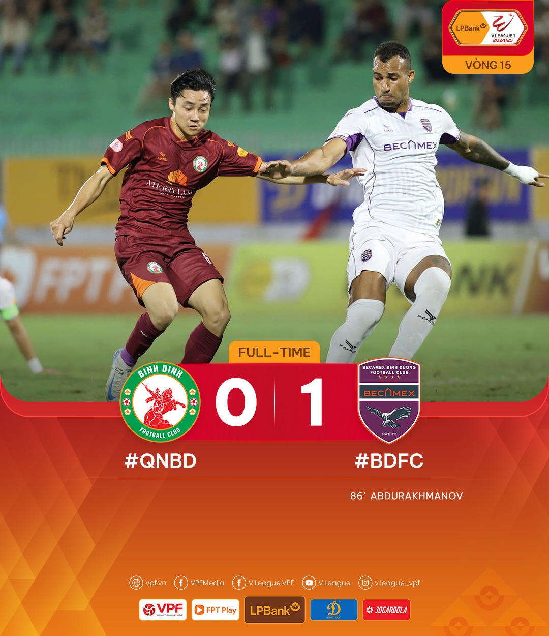Hôm qua, 1/3, pha lập công duy nhất của Abdurakhmanov giúp câu lạc bộ B. Bình Dương giành trọn 3 điểm trước đội chủ nhà Quy Nhơn Bình Định.