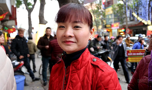 Khách hàng đến quá đông khiến các cửa hàng vàng phải phát phiếu số thứ tự để xếp hàng lần lượt, tránh lộn xộn. Khách hàng Nguyễn Dương Ngọc Linh, Sóc Sơn, Hà Nội nói: “Tôi đến xếp hàng ở đây từ 9h00 đến 10h vẫn chưa mua được vàng. Vì biết hôm nay là ngày vía Thần Tào nên tôi mua nhẫn trơn 3 chỉ vàng lấy may mắn cho cả năm, để làm ăn phát tài phát lộc”