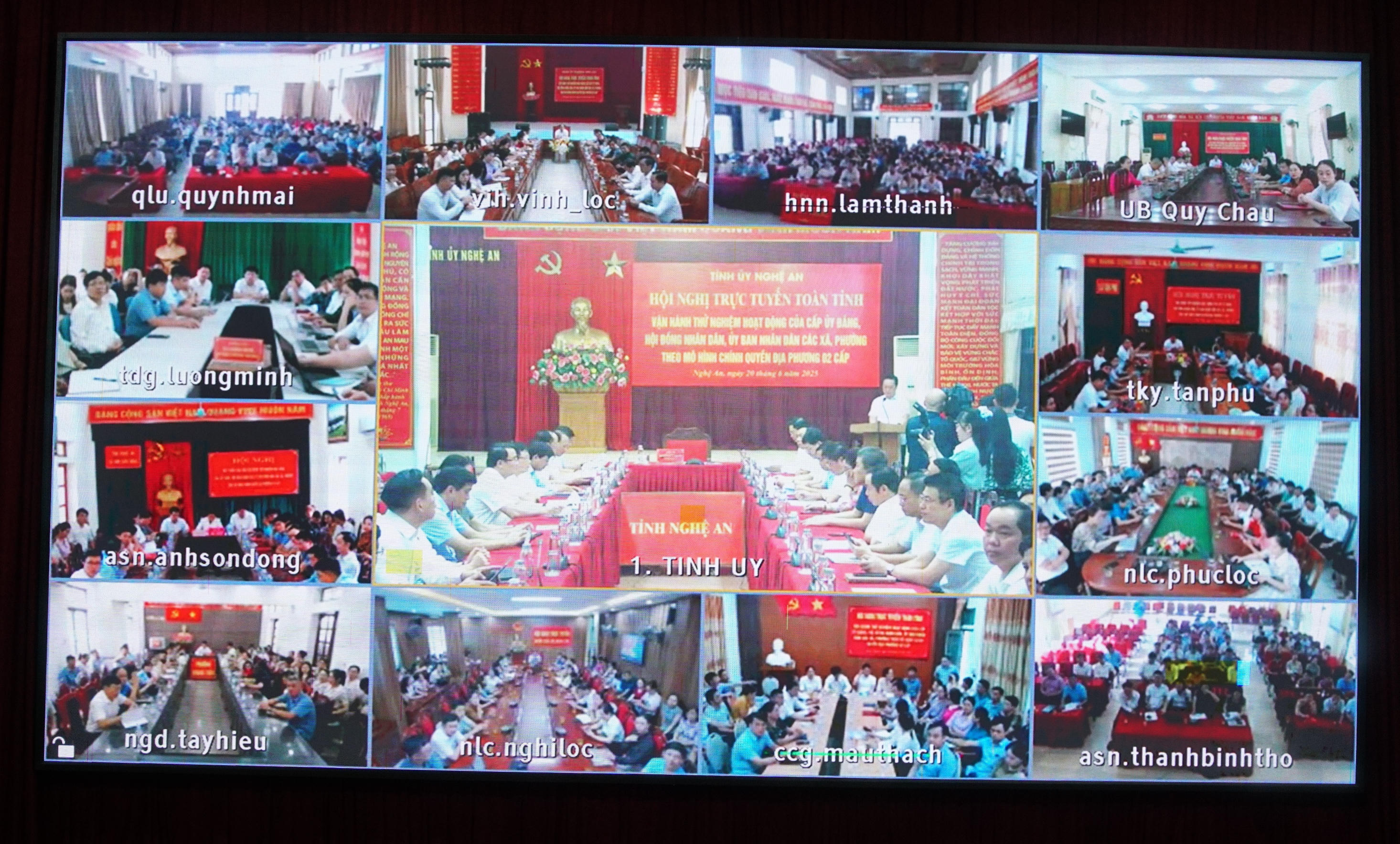 (PLVN) - Sáng 20/6, Ban Thường vụ Tỉnh ủy Nghệ An tổ chức hội nghị trực tuyến toàn tỉnh vận hành thử nghiệm hoạt động của cấp ủy Đảng, HĐND, UBND xã, phường mới theo mô hình chính quyền địa phương 2 cấp trên địa bàn tỉnh.