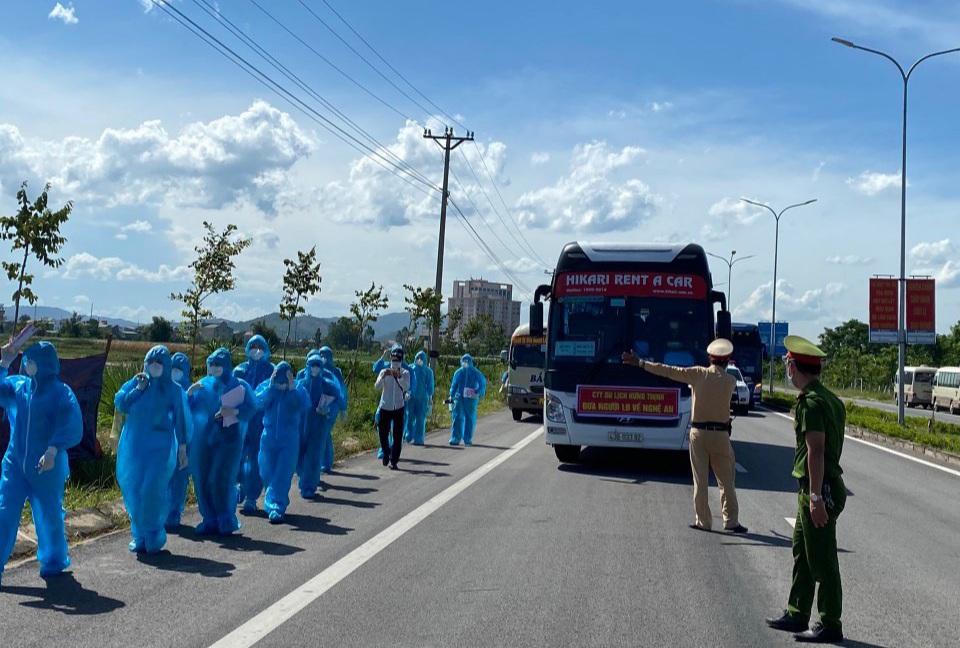 Chiều 25/6, chính quyền các huyện, thành phố, thị xã ở Nghệ An tổ chức nhiều chuyến xe đón gần 1.000 lao động từ Bắc Giang trở về quê.