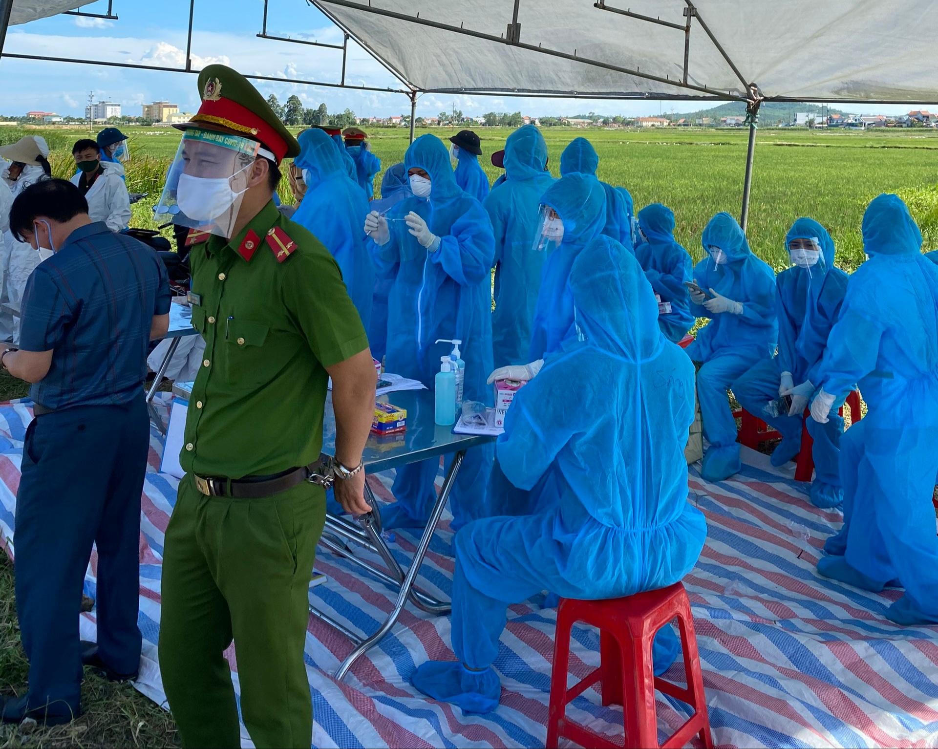 Trước khi lên xe trở về địa phương thực hiện cách ly, những lao động này được khám sàng lọc, lấy mẫu xét nghiệm thực hiện test nhanh COVID-19.