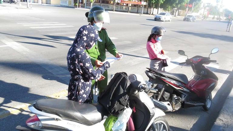 | Lực lượng công an lập biên bản xử lý người dân ra đường không có lý do theo quy định |