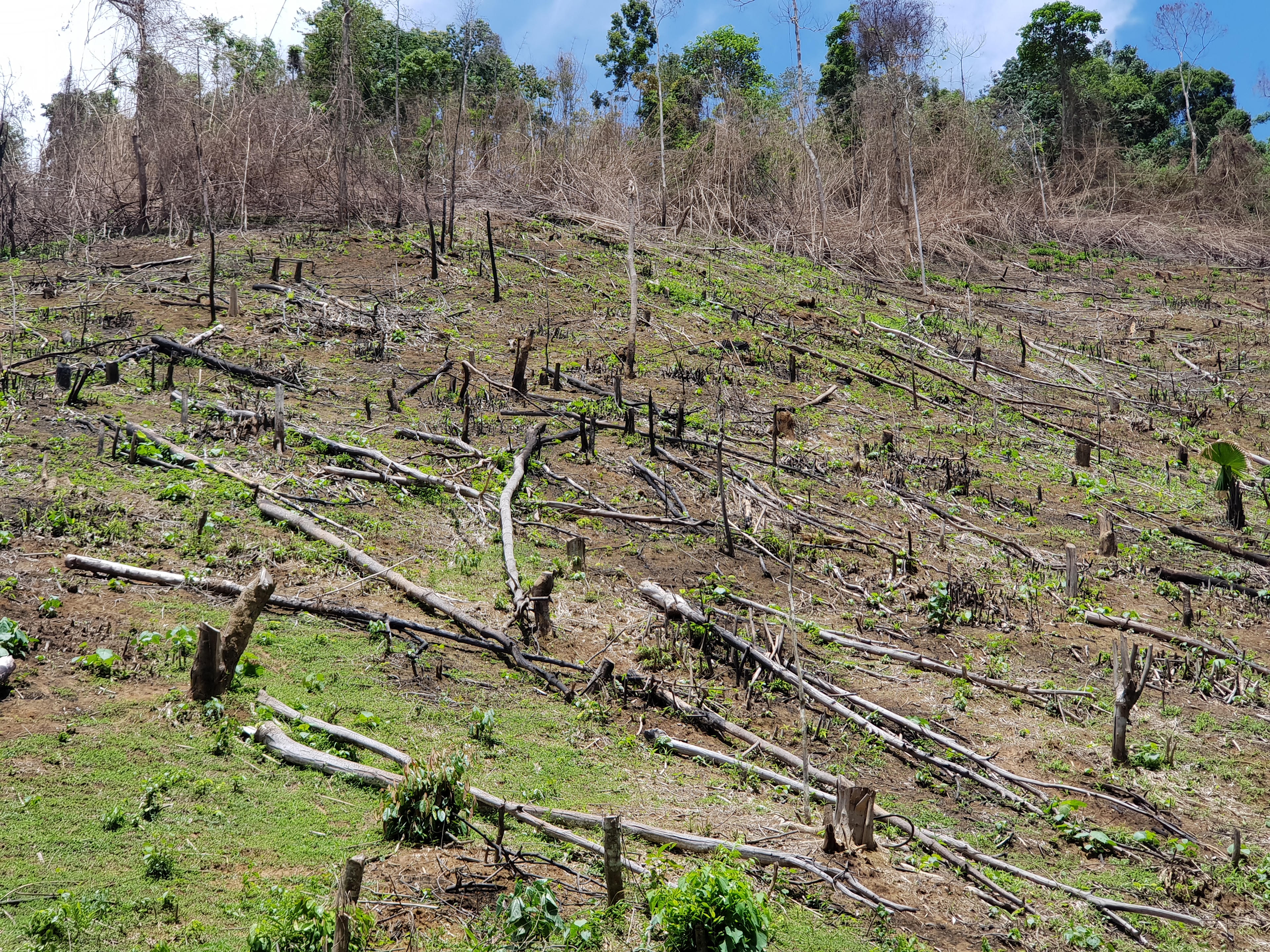 Hiện tượng phổ biến tại các cánh rừng tự nhiên, người dân được giao, tạm giao quản lý, bảo vệ thì họ cứ phát dần, khai thác hết các cây gỗ tự nhiên làm cho rừng kiệt quệ rồi phát và đốt, sau đó mua giống keo về trồng.