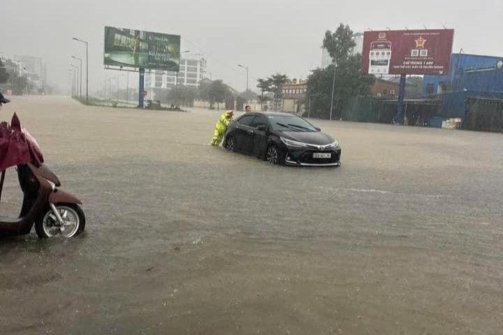 Sáng ngày 23/9, theo ghi nhận của phóng viên, tại TP Vinh trời mưa rất to như trút nước, hầu hết tất cả các tuyến đường đều bị ngập, nhiều khu vực ngập sâu gần nửa mét.