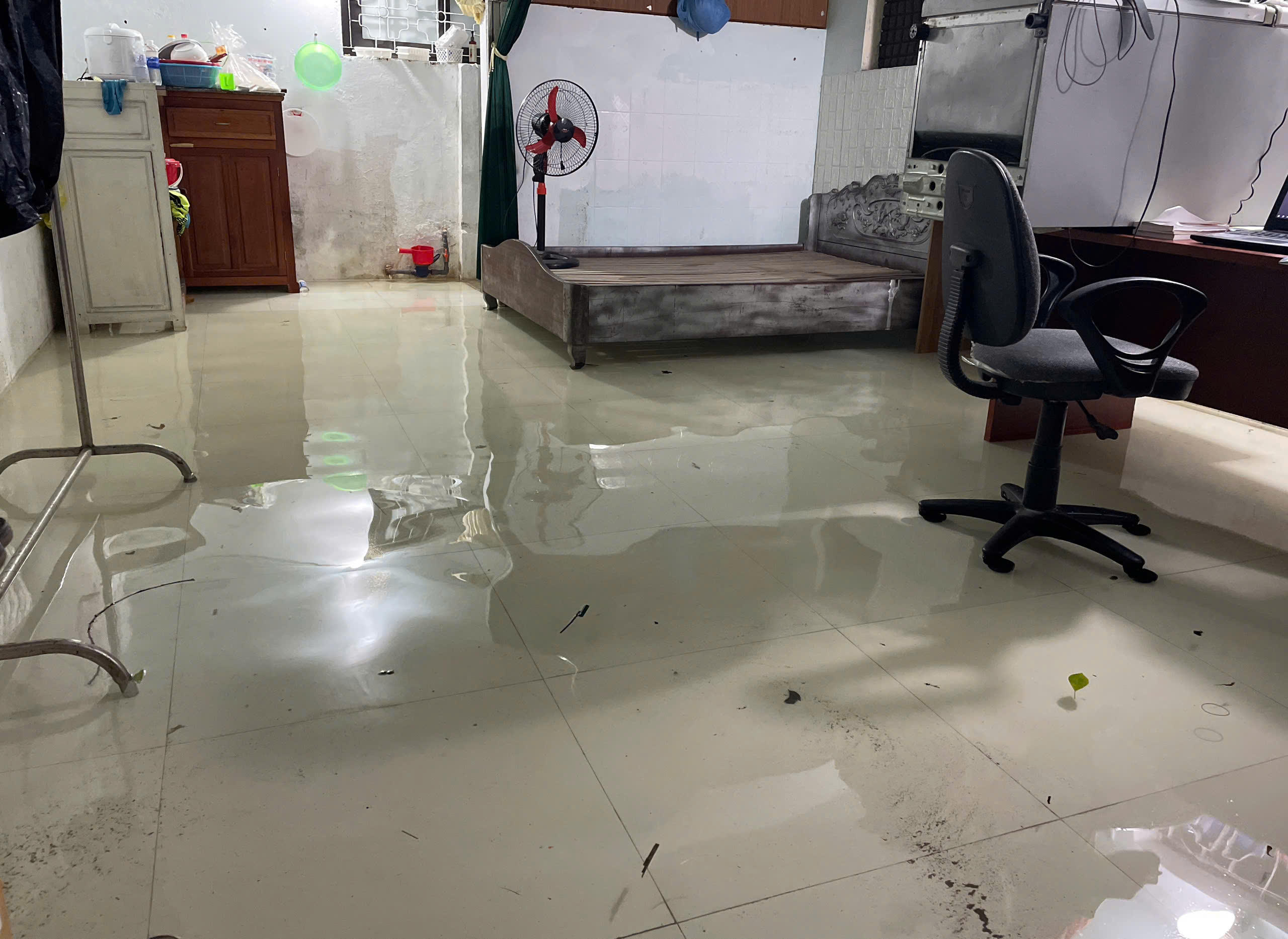 Nhiều nhà dân nằm ở khu vực trũng, nước ngập rất nhanh nên không kịp trở tay. |