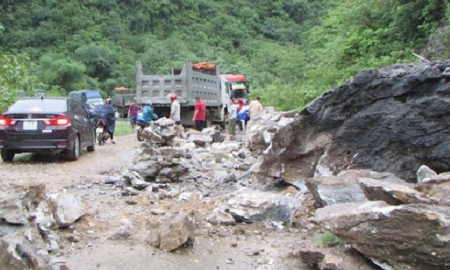Cũng do mưa lớn kéo dài tại huyện miền núi Con Cuông hàng chục m3 đất đá từ ta luy đường bất ngờ đổ xuống Quốc Lộ 7 khiến dẫn đến tắc đường trong nhiều giờ đồng hồ.