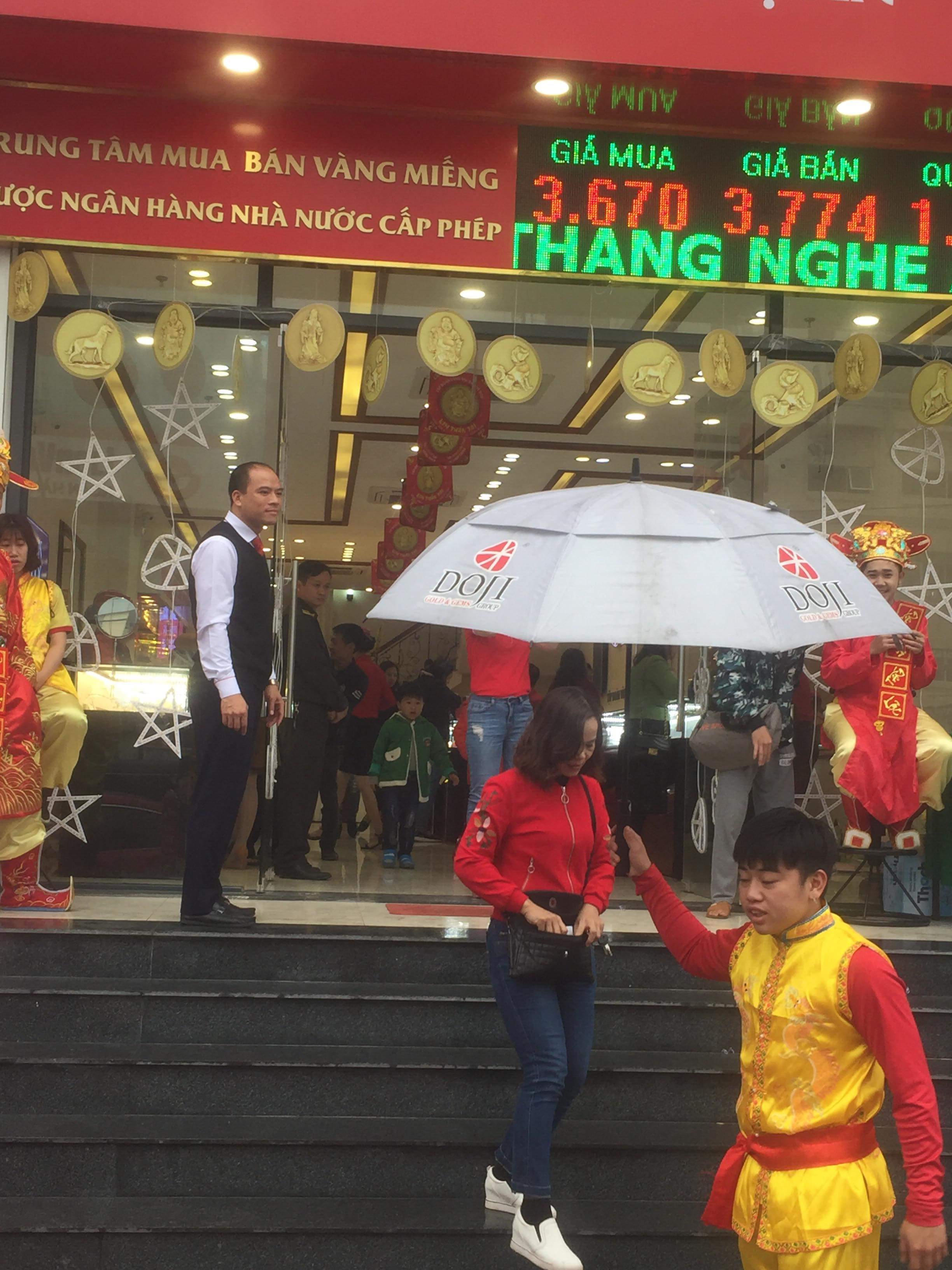 Tất cả các cửa hàng kinh doanh vàng trên địa bàn thành phố Vinh đều đông đúc, nhộn nhịp trong ngày vía Thần Tài. Tại Cửa hàng Kim Thành Huy trên đường Cao Thắng, (TP Vinh) nhiều người dân đến mua vàng khiến cửa hàng quá tải, mọi người phải chen lấn mới vào được trong khu vực cửa hàng. Mặc dù cửa hàng đã bố trí rất nhiều nhân viên để phục vụ nhưng do nhu cầu quá cao nên vẫn diễn ra tình trạng quá tải.