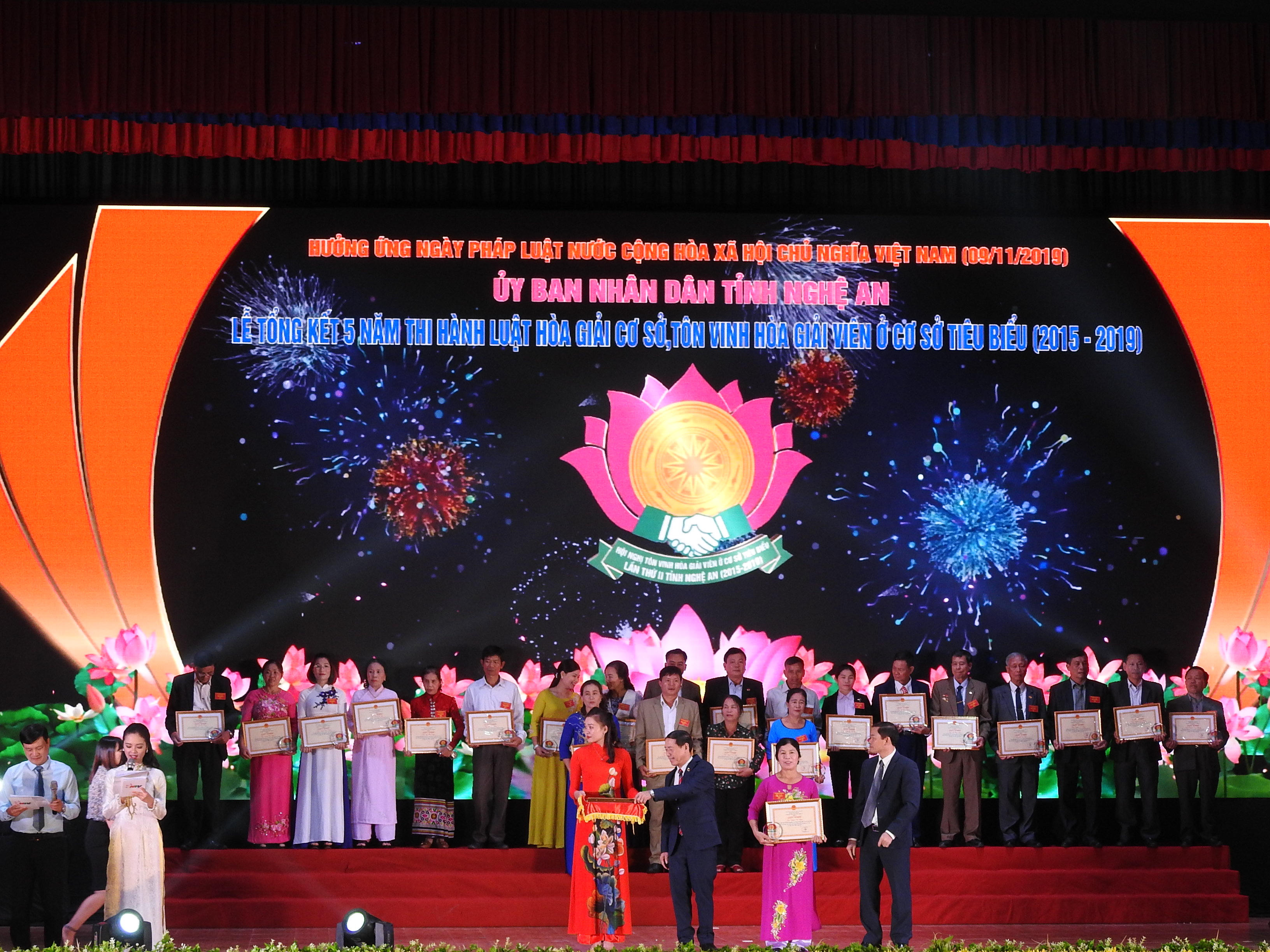 (PLVN) -Tối 9/11 Hưởng ứng ngày pháp luật Nước công hoà xã hội chủ nghĩa Việt nam, UBND tỉnh Nghệ An đã tổ chức Lễ tổng kết năm năm thi hành pháp luật hoà giải cơ sở tôn vinh hoà giải viên cơ sở tiêu biểu năm 2015 – 2019.
