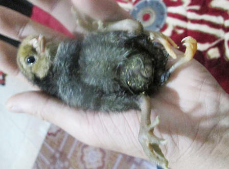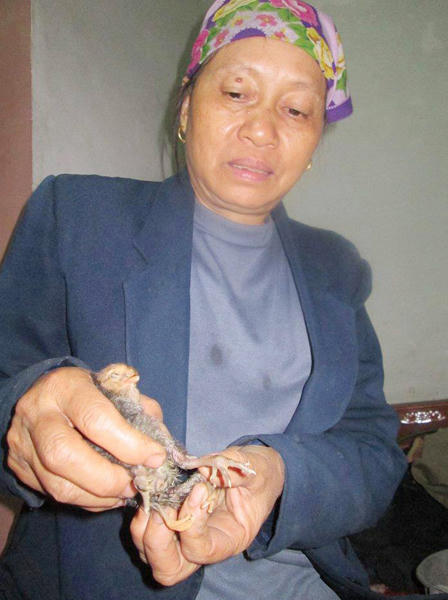 | Chú gà 4 chân mới nở được phát hiện trong chuồng gà nhà bà Sâm |