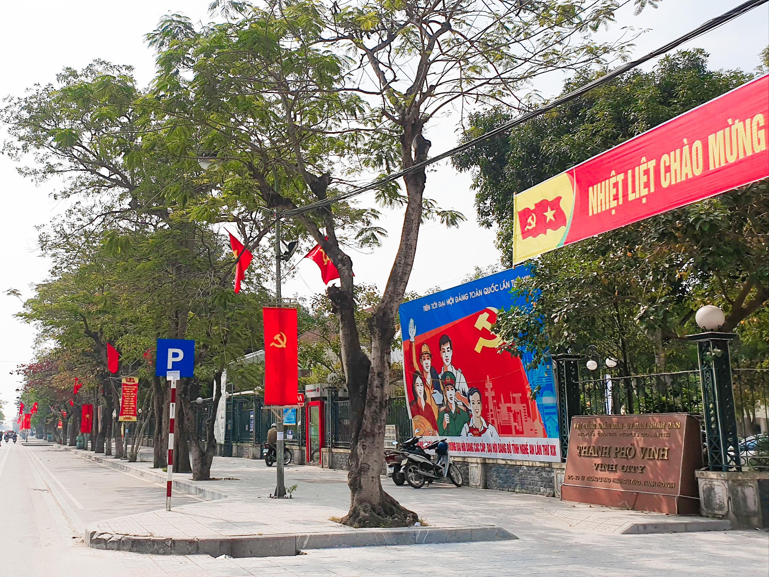Khắp thành phố Vinh thời gian qua sôi nổi thi đua lập thành tích chào mừng Đại hội đại biểu Đảng toàn quốc lần thứ XIII. Các phường xã, khối phố, cơ quan, đơn vị đều có công trình chào mừng, làm nhiều việc tốt dâng lên Đảng kính yêu.