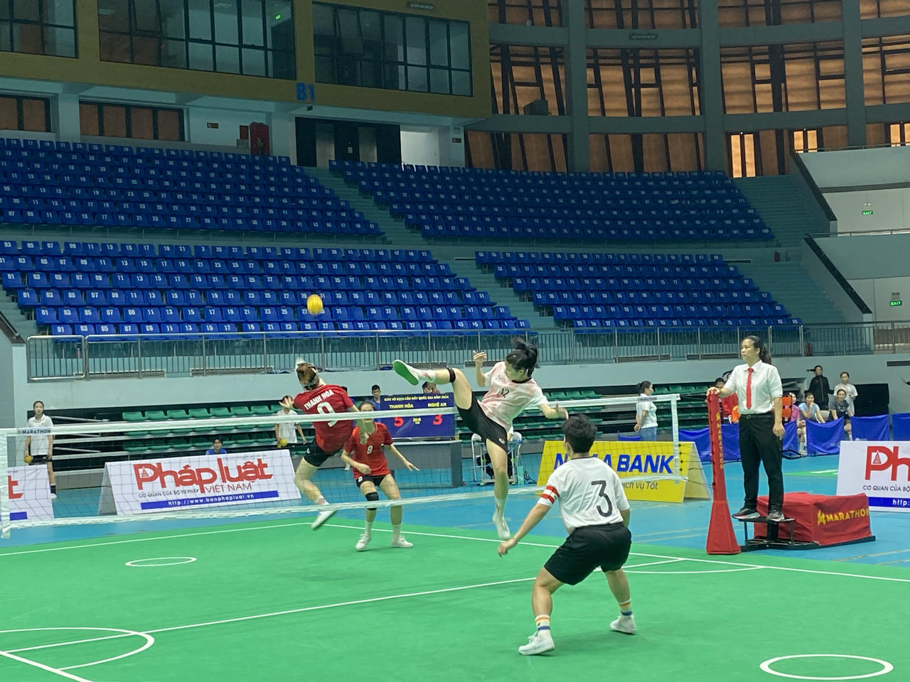 Ở trận bán kết 1 là trận chiến giữa hai người hàng xóm là Nghệ An và Thanh Hóa. Không riêng cầu mây mà ở gần như các môn thể thao đối kháng khác khi hai đội hàng xóm này gặp nhau sẽ đều là những trận đấu không khoan nhượng. Diễn biến trên sân cũng đã minh chứng cho điều đó khi mà hai đội ăn miếng trả miếng với những pha phối hợp và dứt điểm rất đẹp mắt và “chất lượng”.