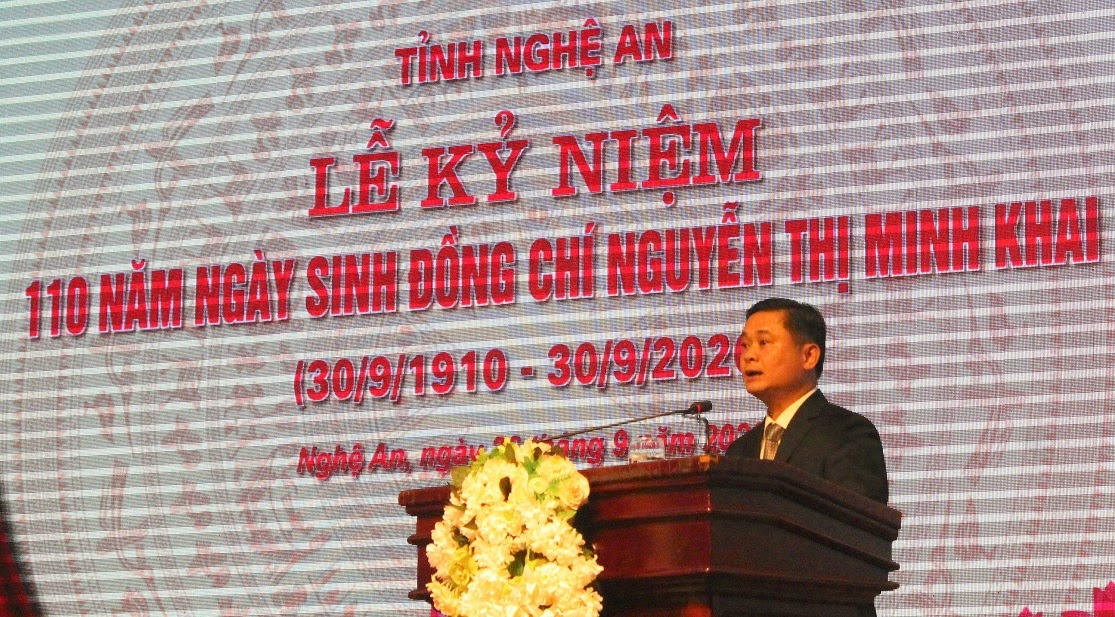 Phát biểu tại buổi lễ, Phó Chủ tịch UBND tỉnh Bùi Đình Long nhấn mạnh, Lễ kỷ niệm 110 năm Ngày sinh đồng chí Nguyễn Thị Minh Khai là một hoạt động chính trị, xã hội có ý nghĩa quan trọng nhằm tưởng nhớ, tôn vinh và tri ân cuộc đời cao đẹp, những đóng góp to lớn của đồng chí Nguyễn Thị Minh Khai đối với sự nghiệp cách mạng vẻ vang của Đảng, của cách mạng Việt Nam.