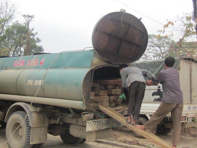 Sau một thời gian dài điều tra, mật phục, đội kiểm lâm cơ động và phòng cháy chữa cháy rừng số 3, (chi cục kiểm lâm Nghệ An) đã lật tẩy một thủ đoạn vận chuyển lâm sản mới và tinh vi của lâm tặc. Núp bóng dưới hình thức là xe bồn chuyên chở xăng dầu phục vụ cho công trình thuỷ điện, các đối tượng đã chế lại bồn đựng xăng dầu để cất dấu gỗ vào hòng qua mặt cơ quan chức năng.