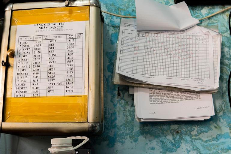 Những đêm Giao thừa, chị lủi thủi ghi chép nhật ký thời gian tàu đến để kéo chắn ngang.