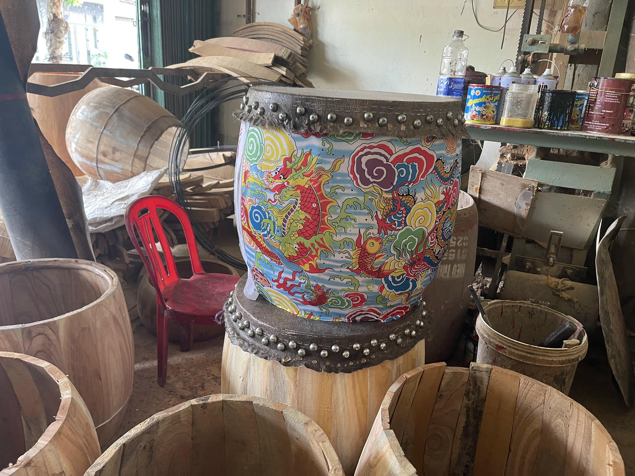 Một chiếc trống vừa được thành hình. |