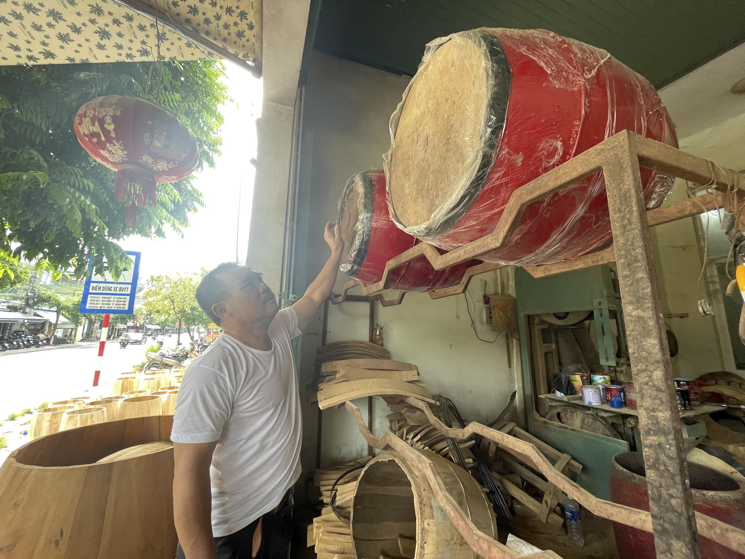 Nghề làm trống Đọi Tam ở Quảng Ngãi tất bật phục vụ Tết Trung thu