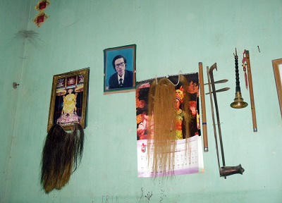 Ông Hỷ tâm sự: “Đồ thờ gồm có hai bảo đao và một bức tượng, tất cả đều được đúc bằng đồng thau. Nghe nói trong tượng có cả vàng nhưng đã bị đánh cắp”. Ông Hỷ tự hào nói rằng chính Phú Mẫn có “tổ tuồng” nên làng ông mới có Đội tuồng. Bởi hiện ngoài các nhà hát tuồng do Nhà nước thành lập, chưa thấy địa phương nào trong cả nước thành lập được đội tuồng và duy trì được hoạt động qua các thời kỳ như ở làng ông.
