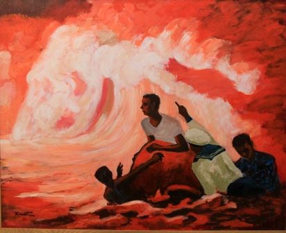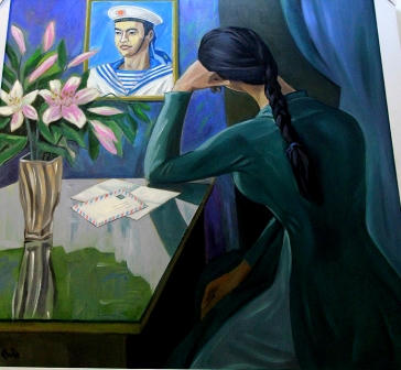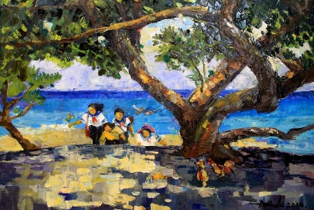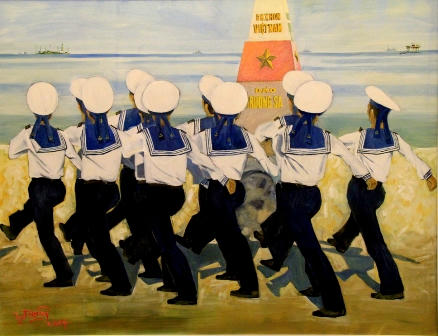 Triển lãm "Đến với Trường Sa" là một hoạt động ý nghĩa và thiết thực, là thông điệp thể hiện tình yêu nước bằng hành động cụ thể trong sáng tác, thái độ của các nghệ sỹ tạo hình trong cả nước. Tác phẩm “Dưới cây Phong Ba” - Đỗ Đức Khải.