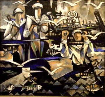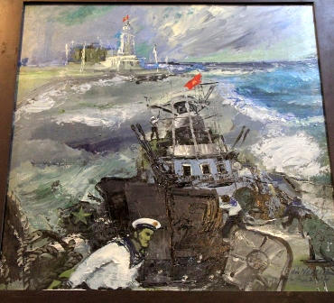 Nhiều bức tranh sơn mài phản ánh chân thực cuộc sống của người lính đảo ngày đêm gác ngọn đèn biển của tác giả Trần Vũ Hoàng. Tác phẩm "Bão biển" - Trần Vũ Hoàng".