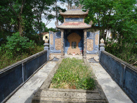 Rồi lúc xây lăng cho ông, việc ghi tên vào bia của vợ và con cũng gặp rất nhiều rắc rối. Tuy cái bia của ông được đặt ở tận TP Huế, to nhất nhưng cũng không thể ghi hết tên con nên anh em mới bàn nhau chỉ có những ai về bịt tang và lo cho đám mới được ghi tên vào bia, sau này nếu có điều kiện thì bổ sung sau. Trong bia chỉ ghi được 6 vợ, 12 người con trai và 9 người con gái.