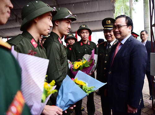 Có mặt tai buổi lễ, ông Hoàng Trung Hải, Bí thư Thành ủy Hà Nội đã đến trò chuyện, thăm hỏi, động viên các tân binh lên đường nhập ngũ. Trò chuyện với các tân binh, Bí thư Thành ủy Hà Nội nhấn mạnh, được phục vụ trong lực lượng Quân đội nhân dân Việt Nam là vinh dự lớn lao. Nguồn: Dân Việt