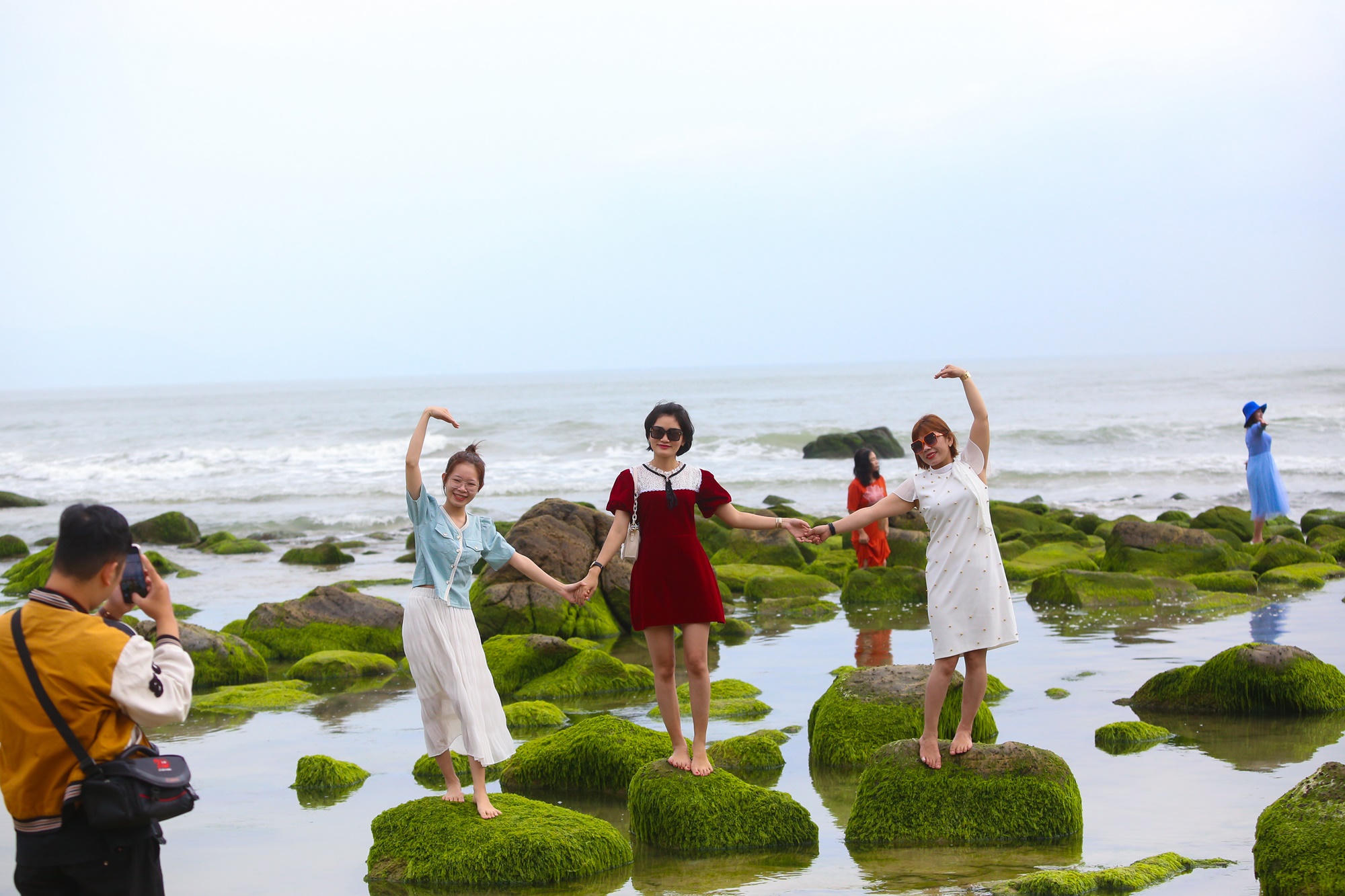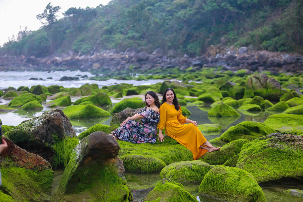 Theo người dân địa phương, thời điểm đẹp nhất để chụp ảnh là sáng sớm, lúc mặt trời ló dạng, thủy triều rút, bãi rêu xanh thơ mộng dần hiện ra, nhìn rêu mịn màng, mềm mại phủ kín các tảng đá đẹp tựa như khung cảnh cổ tích.