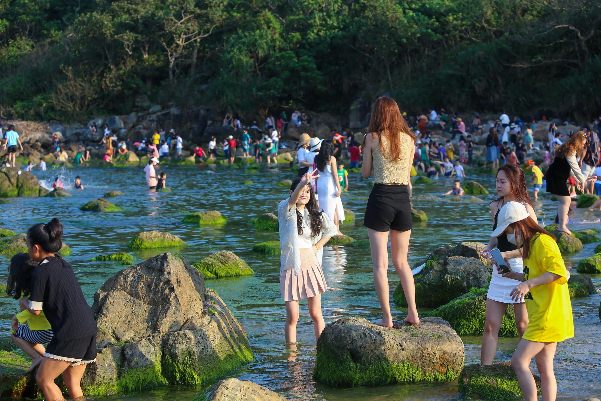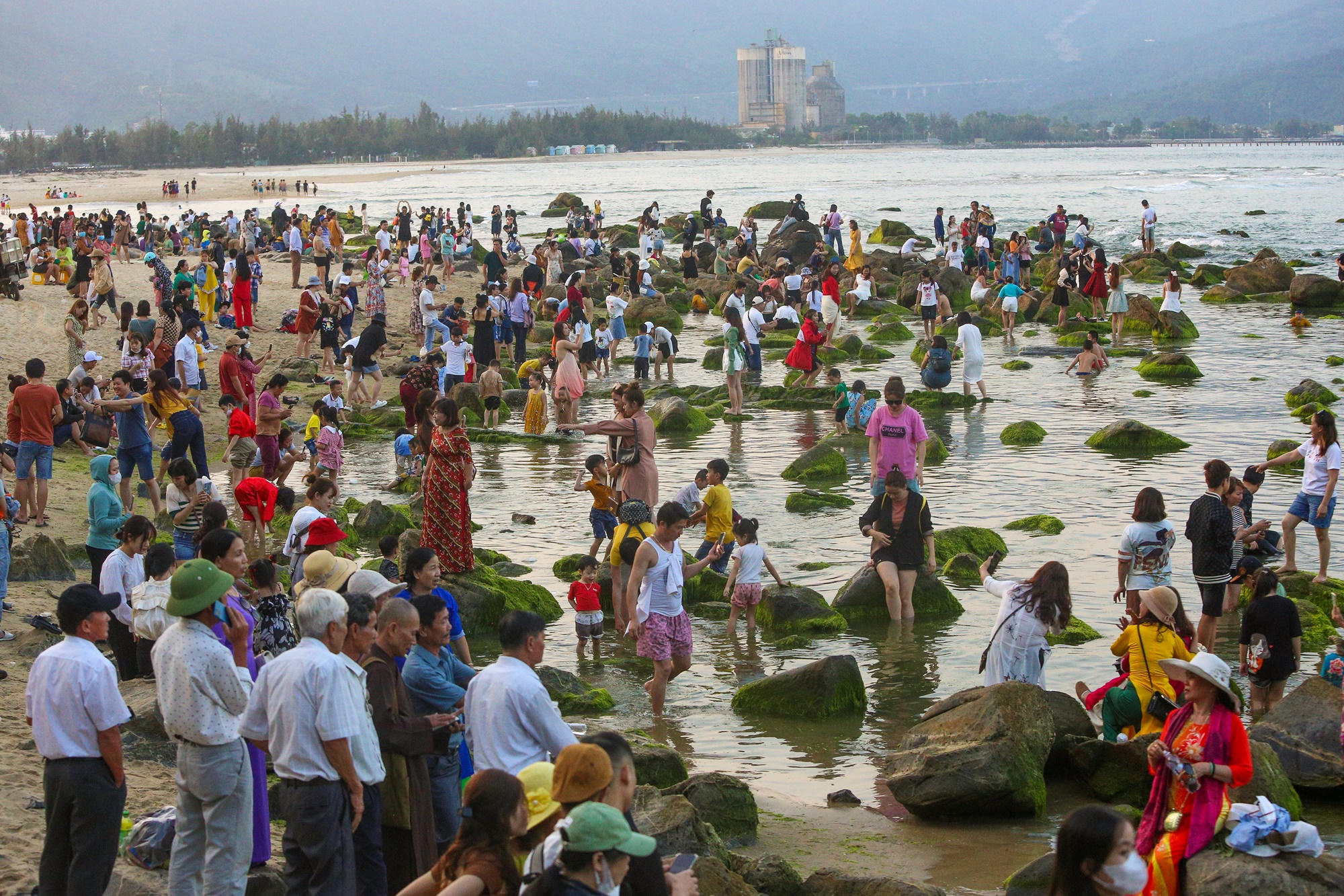 Nghềnh đá Nam ô xanh mướt như ngọc: Người dân và du khách đổ xô đến check in