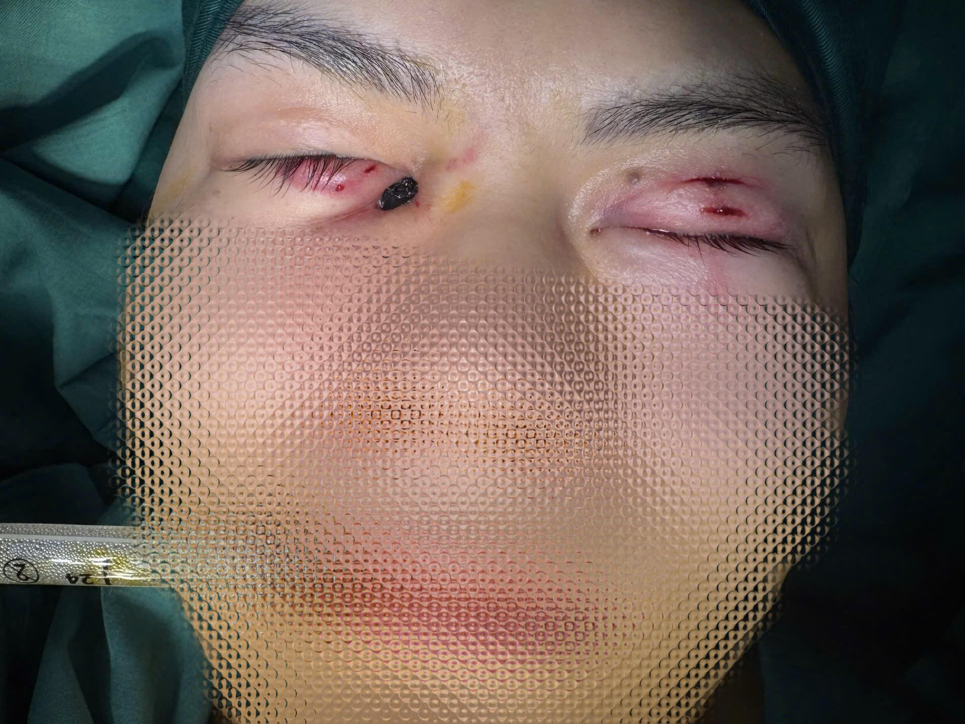 Theo thông tin từ bệnh viện, người bệnh B.T.D (trú tại Phú Thọ) nhập viện cấp cứu với hai dị vật dài khoảng 7–10 cm cắm sâu vào hốc mắt. Một bên dị vật chỉ lộ phần đầu rất ngắn, trong khi bên còn lại nằm hoàn toàn bên trong, không xác định được hướng đi ban đầu, khiến việc thăm khám và xử trí gặp nhiều khó khăn.