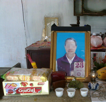 Qua khe cửa, mọi người nhìn thấy lửa bao trùm thân thể ông Tuất. Ông lão kêu gào thảm thiết, quằn quại đau đớn. Khi những người hàng xóm phá được cửa xông vào, nạn nhân đang nằm gục dưới nền nhà, mặt mũi méo mó, biến dạng, quần áo bị cháy đen.