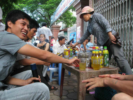 Cùng với việc thử mình ở các danh mục quán ăn thực phẩm, không ít sinh viên đã lập nên những mô hình kinh doanh đồ uống ngay cạnh các cổng trường đại học. Là một trong số sinh viên thành công trong việc phát triển mô hình kinh doanh trà đá vỉa hè tại cổng trường đại học, Lê Bá Kiền cho biết: “Do thời gian rãnh rỗi lại hay lêu lổng ở các quán trà đá cổng trường nên đã nảy sinh ý tưởng trên."