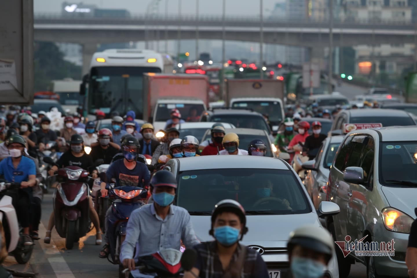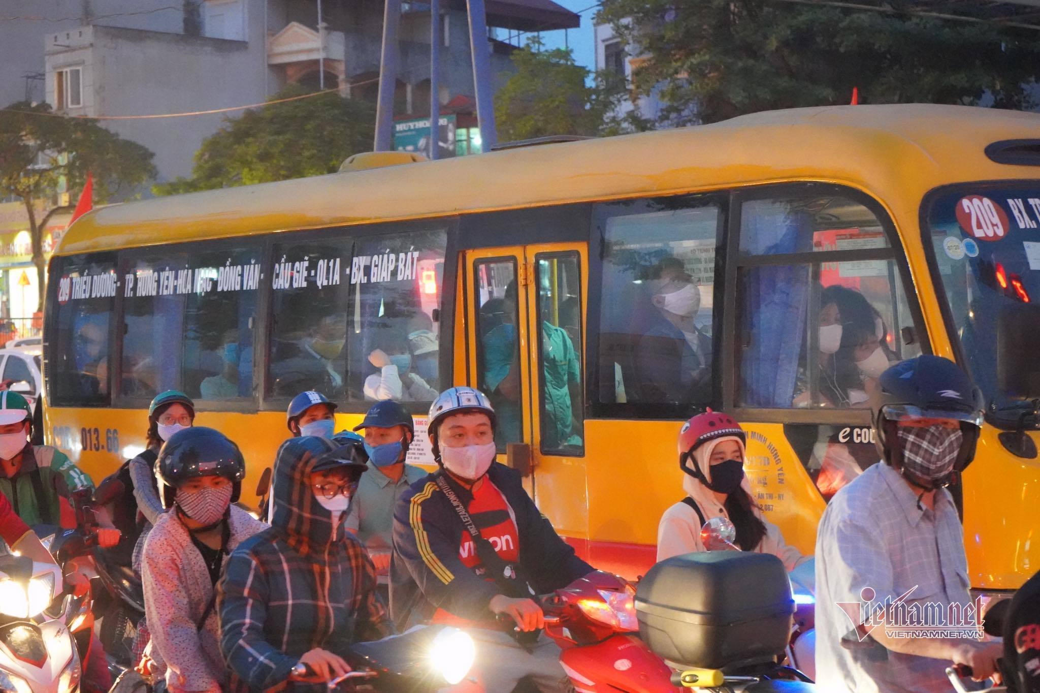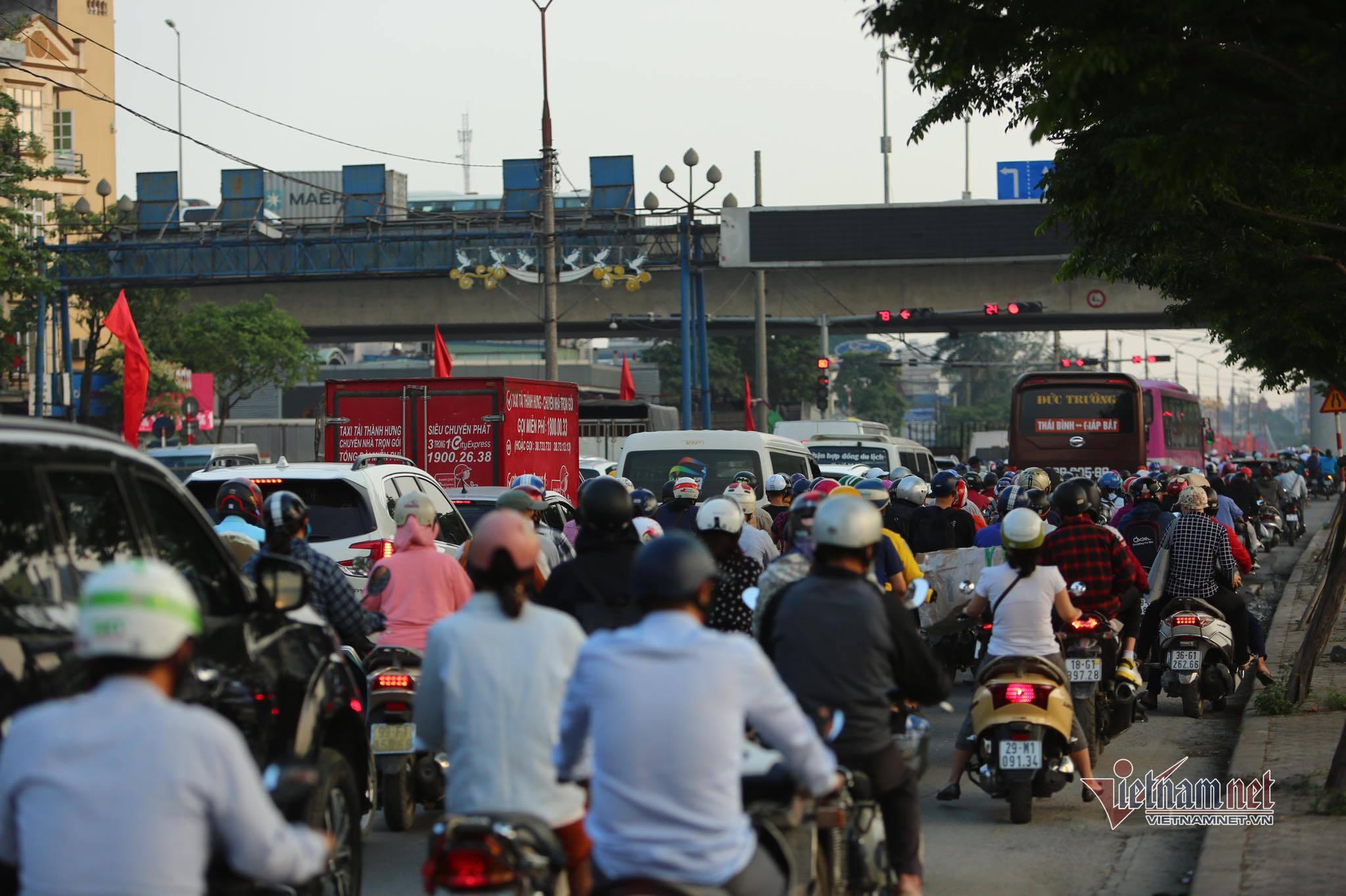 Nhiều tuyến đường hướng ra đường Giải Phóng, bến xe Nước ngầm ra quốc lộ 1 đông đúc. Các phương tiện di chuyển chậm.