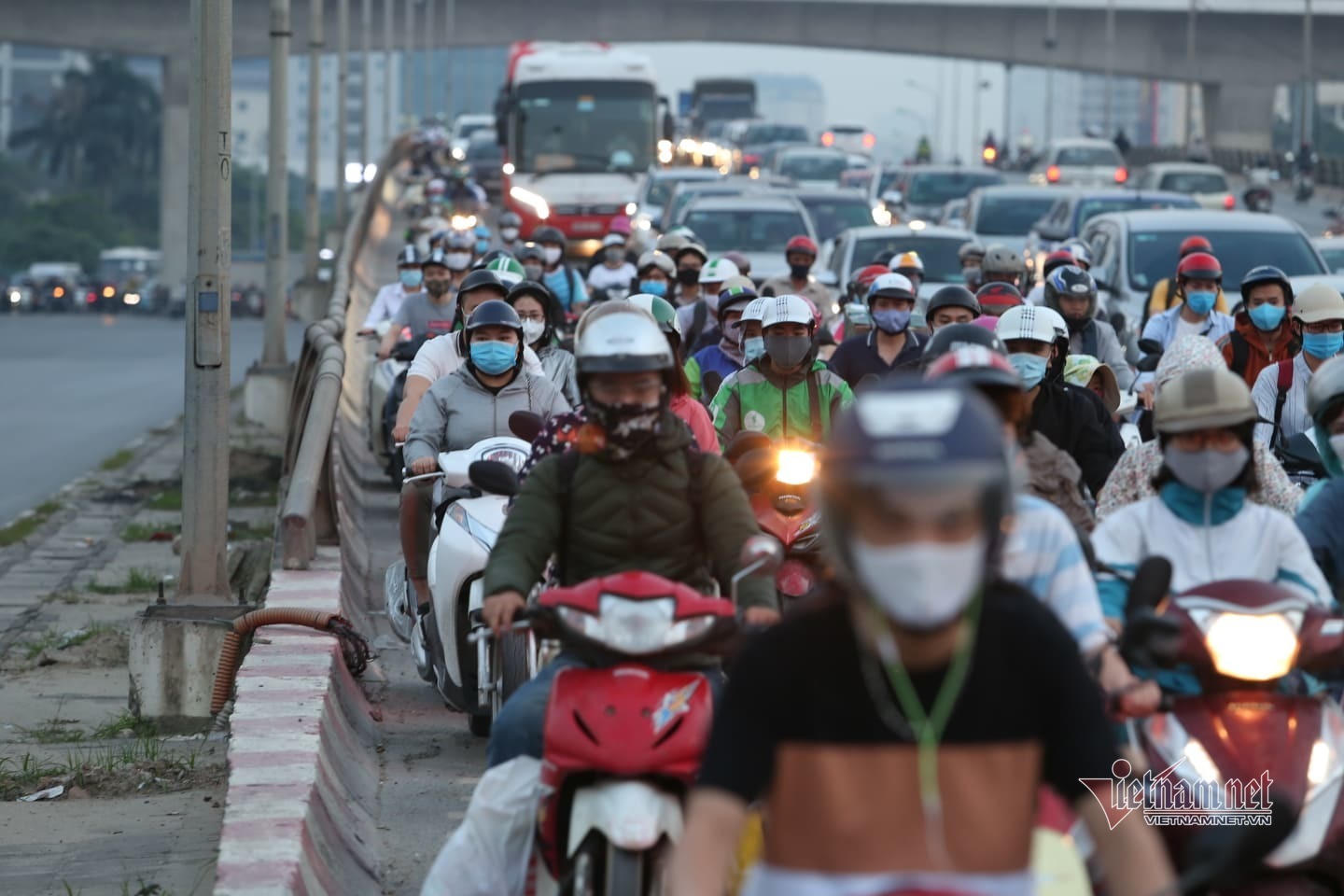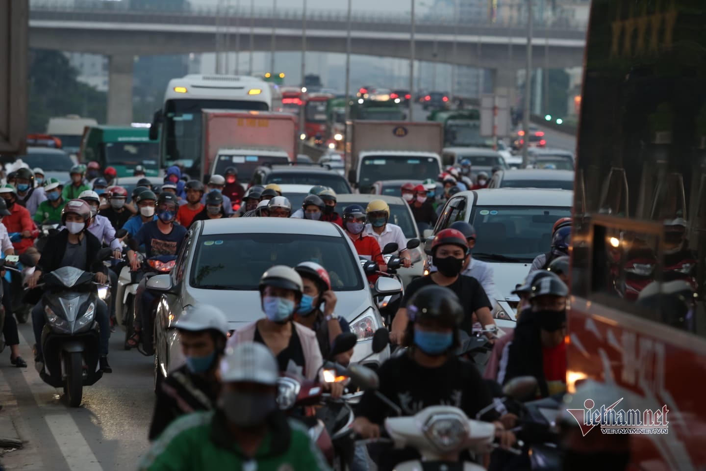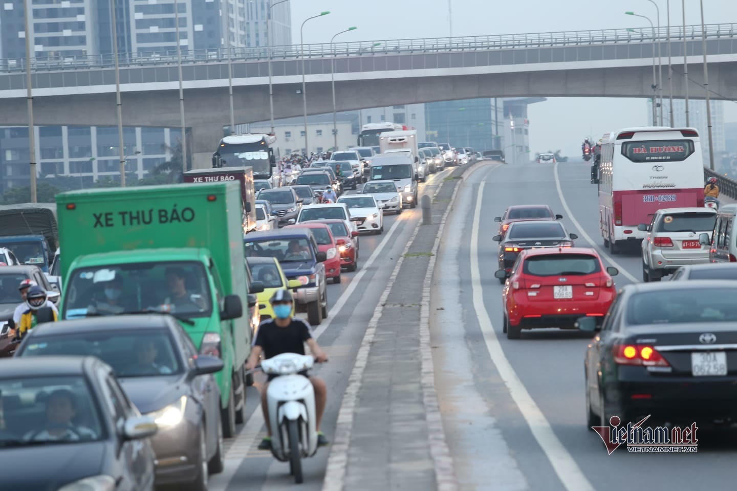 Nhiều tuyến đường hướng ra đường Giải Phóng, bến xe Nước ngầm ra quốc lộ 1 đông đúc. Các phương tiện di chuyển chậm.