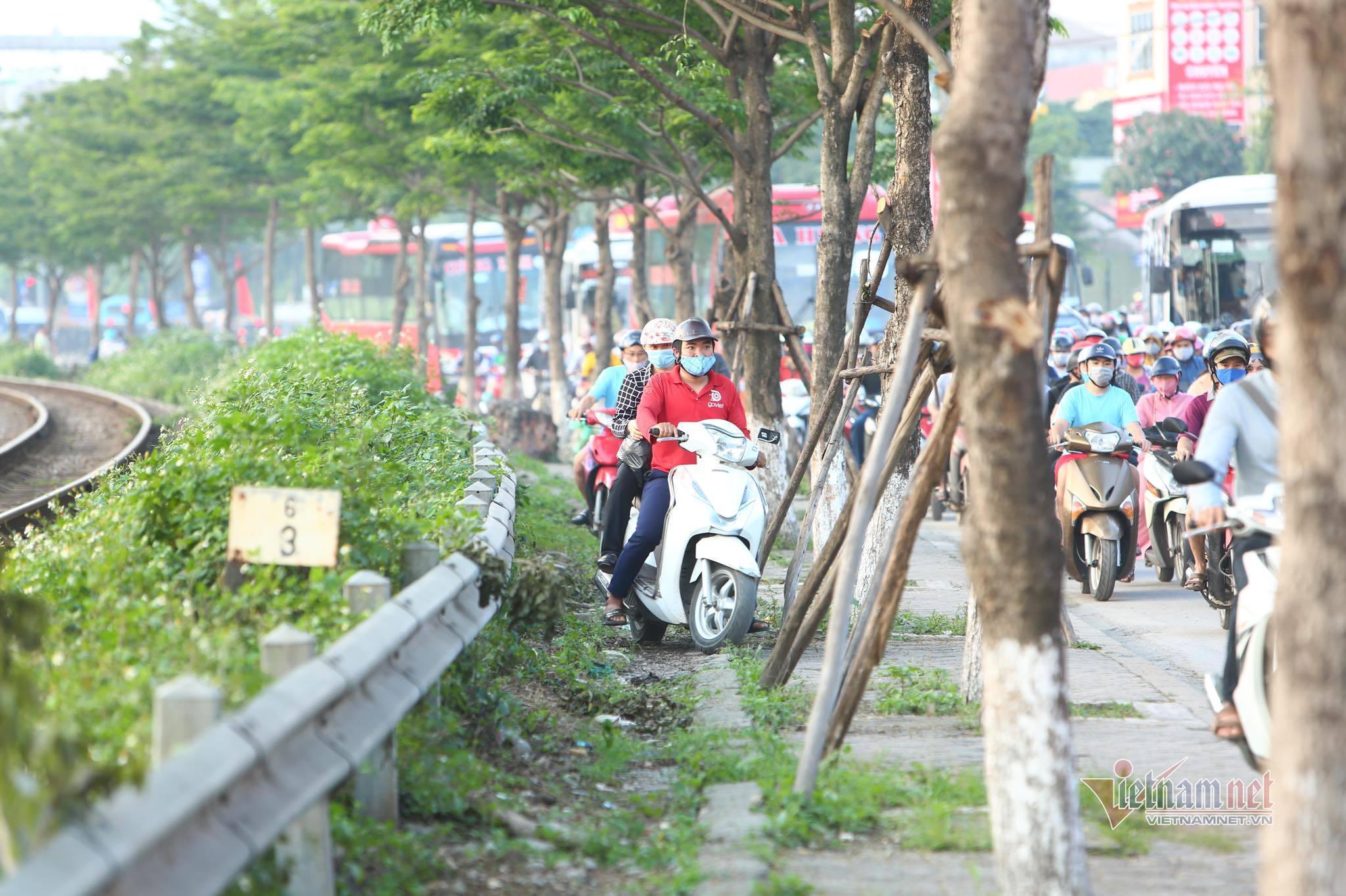 | Đường đông, nhiều người lách lên vỉa hè |