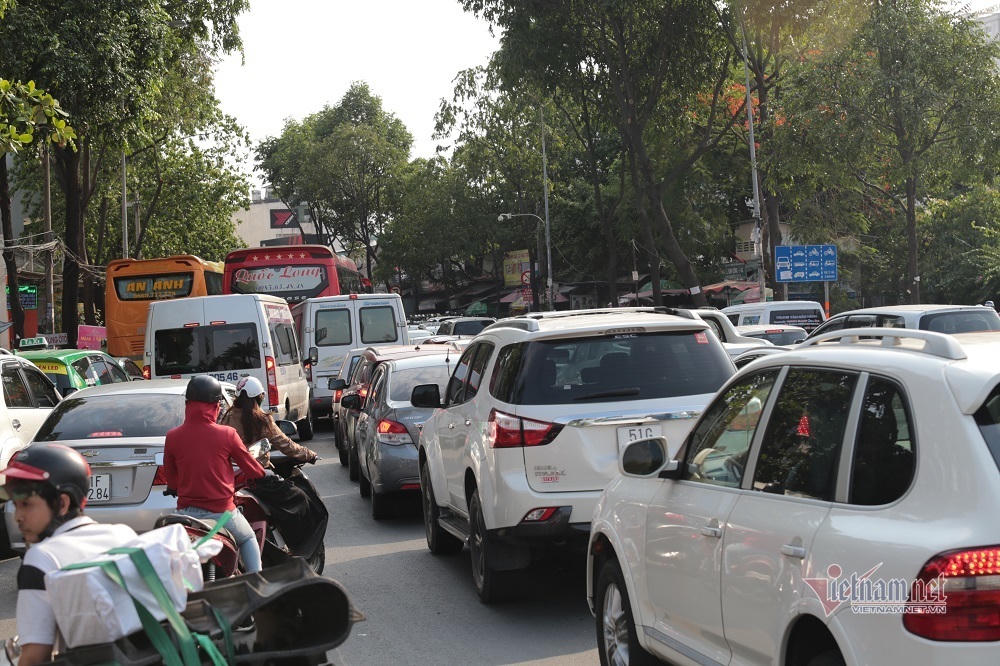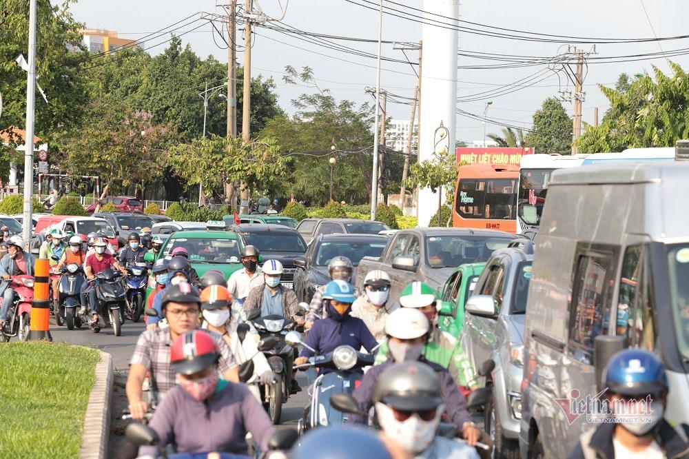 | Do người dân đổ về bến xe miền Đông quá lớn khiến các tuyến đường xung quanh xảy ra tình trạng ùn tắc |