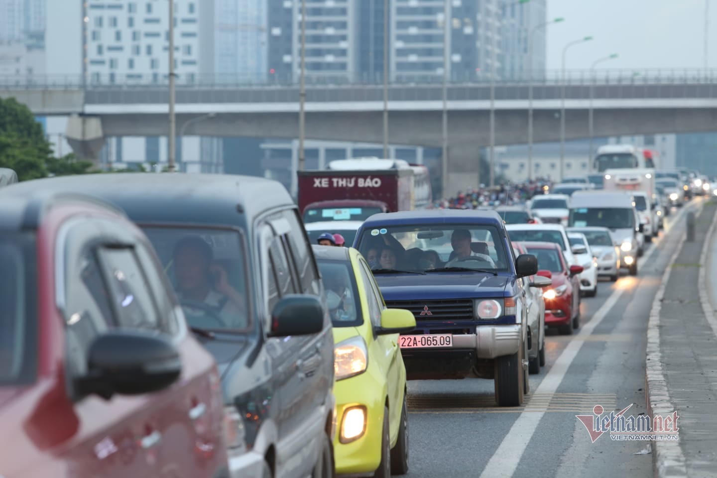 Cầu vượt Mai Dịch ùn tắc nghiêm trọng.