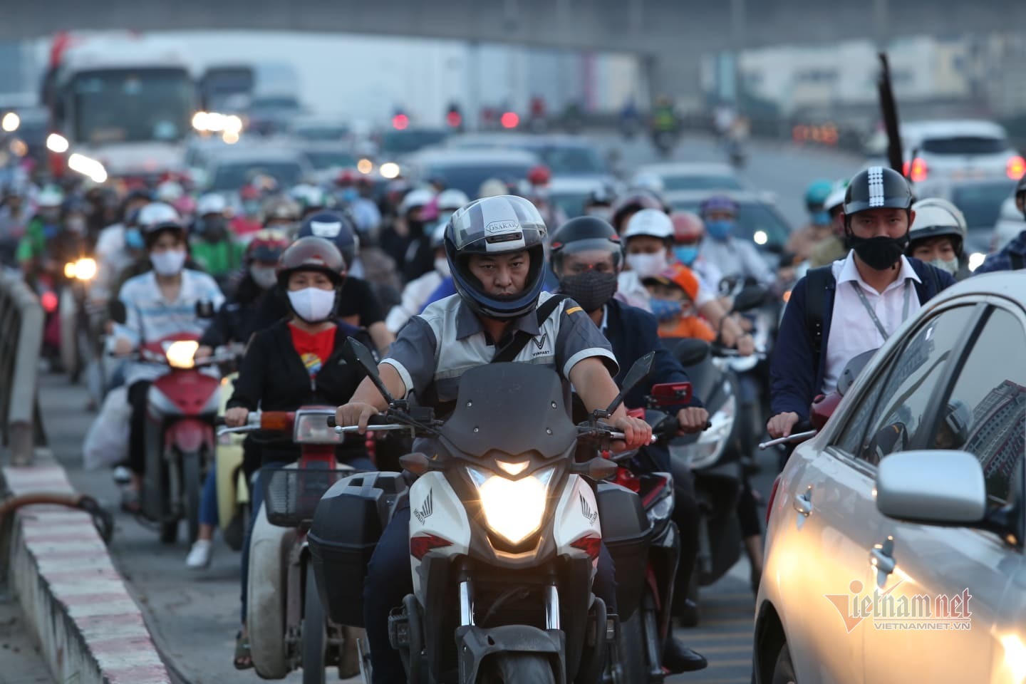 | Hàng nghìn phương tiện phải nhích từng mét |