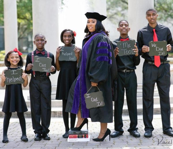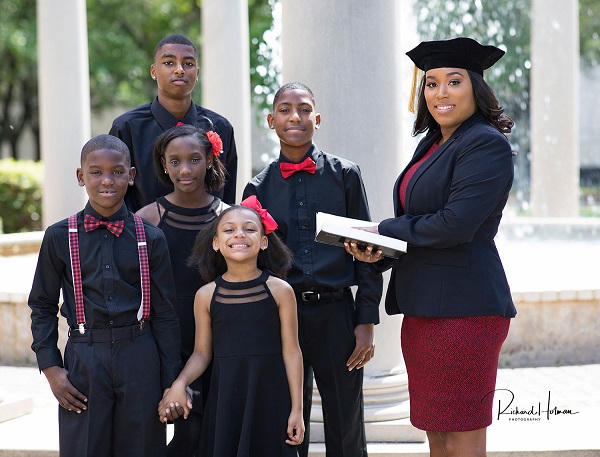 Trong buổi lễ tốt nghiệp, không ai vui mừng lớn hơn David Jr. 14 tuổi, Davien 12 tuổi, Khassidy 11, Kaleb 8 tuổi và E’mani 5 tuổi. “Chúng con rất hãnh diện về mẹ, mẹ là tảng đá của chúng con. Mẹ là hình mẫu tuyệt vời cho con và các em và con rất vui mẹ là mẹ của con”, cậu bé David Jr. bày tỏ.