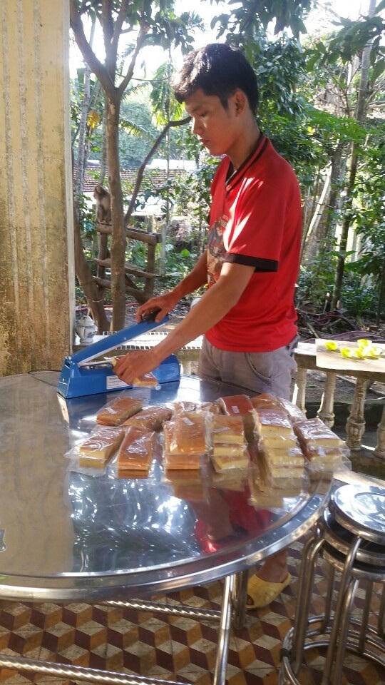 Ngoài nuôi gà, Tiến còn làm bánh Bông lan quy mô nhỏ bán cho các cửa hàng quanh vùng. Theo lời Tiến tâm sự, những năm học đại học, em đi làm phụ việc cho một xưởng bánh bông lan. Thấy em hiền lành, chăm chỉ, bà chủ đã tận tâm truyền nghề. Khi trở về quê, Tiến nghĩ ngay đây là công việc phù hợp với mình nên đầu tư mua thiết bị và thực hiện ngay. Hiện tại, thiết bị làm bánh có công suất nhỏ, Tiến chỉ sản xuất theo đơn đặt hàng, mỗi đợt chỉ làm 2-5 kg.