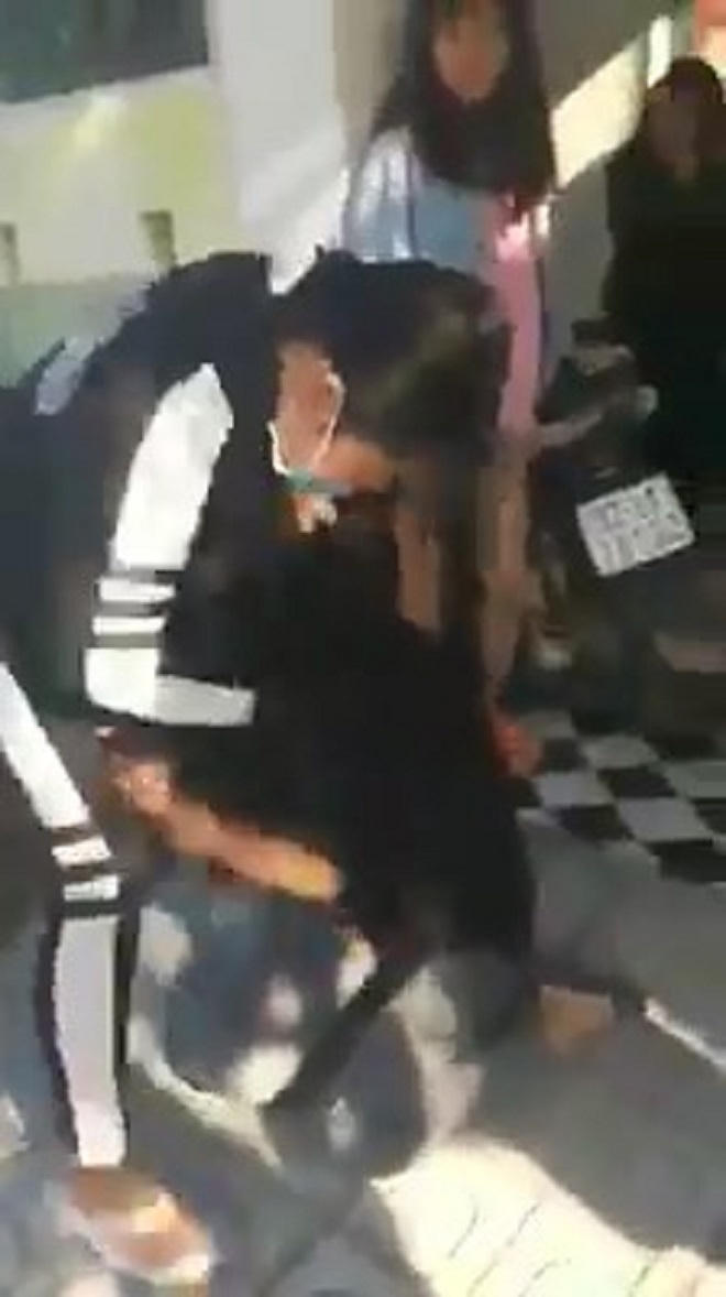 Trước đó, trên mạng xã hội Facebook xuất hiện đoạn clip ghi lại cảnh 2 nữ sinh bị đánh đập. Mặc dù được nạn nhân van xin nhưng nhóm người này vẫn dùng mũ bảo hiểm đánh, đá vào người.