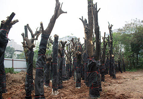 | Hơn 100 cây hoa sữa trên đường Nguyễn Chí Thanh được trồng lại tại vườn ươm của Công ty Công viên Cây xanh Hà Nội. |