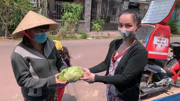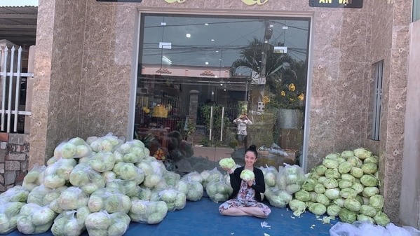 “Bắp cải về shop em rồi. Mọi người ghé nhận lấy thảo nha…nhà ít người thì nửa bắp, đông người thì 1 bắp… Mai hoặc mốt 5 tấn cà chua về…em hú mọi người ra nhận… nay em đi quay rồi không có ở nhà mọi người đến lấy tự nhiên ạ”.