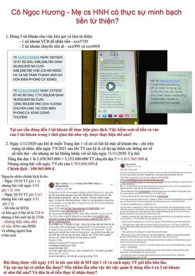 Theo những thông tin được tổng hợp trong bài đăng này, mẹ ruột Hồ Ngọc Hà đã dùng tới 3 số tài khoản ngân hàng để thực hiện các giao dịch chuyển tiền từ thiện. Việc kiểm soát các giao dịch tiền ra - tiền vào của từng tài khoản này hiện vẫn chưa được công khai rõ ràng.